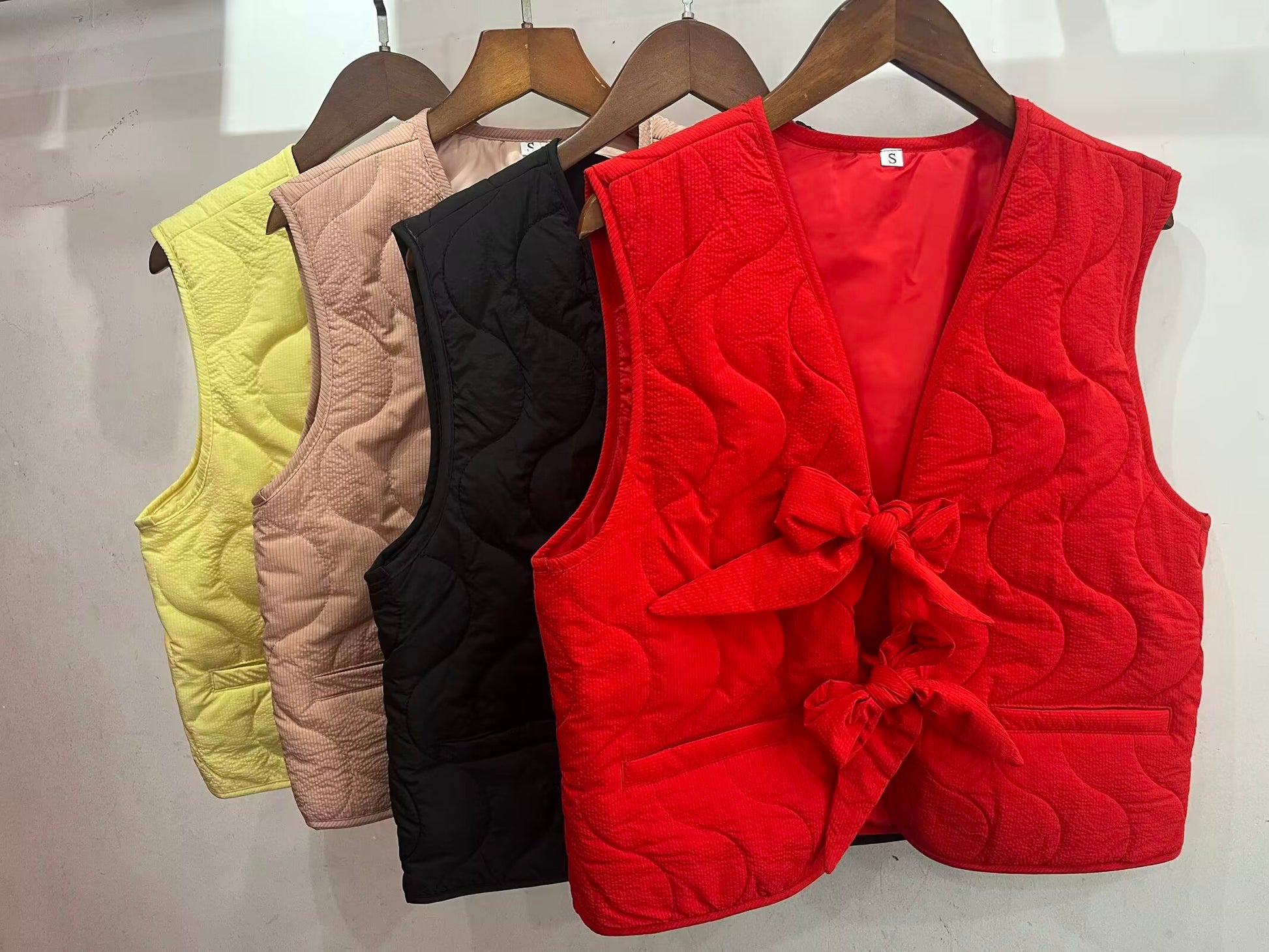 Ladies' 2025 New Fashion Bow Decoration Loose V-neck Warm Cotton Vest
