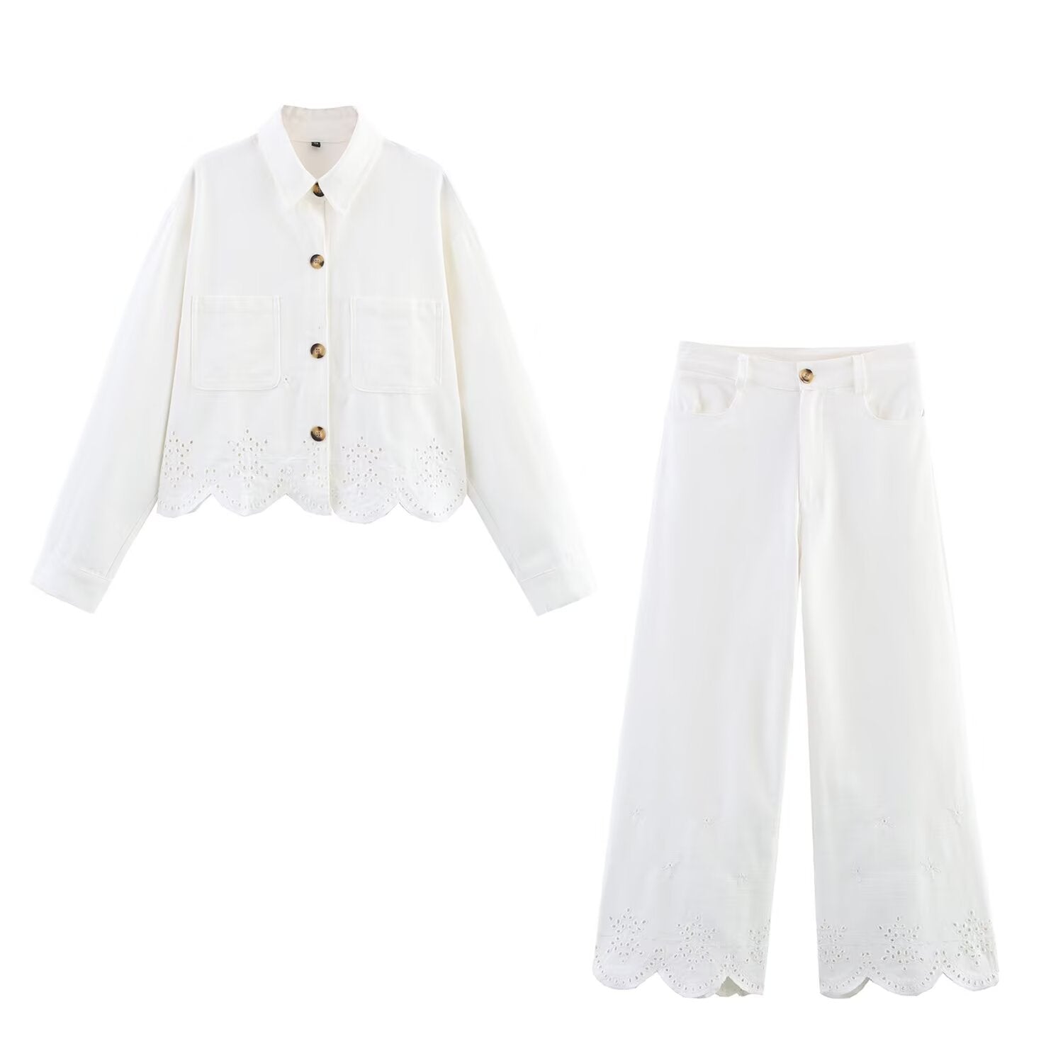 Ladies' New Fashion Casual Single breasted Hollow Embroidered Shirt Coat+Pants Women's Suit