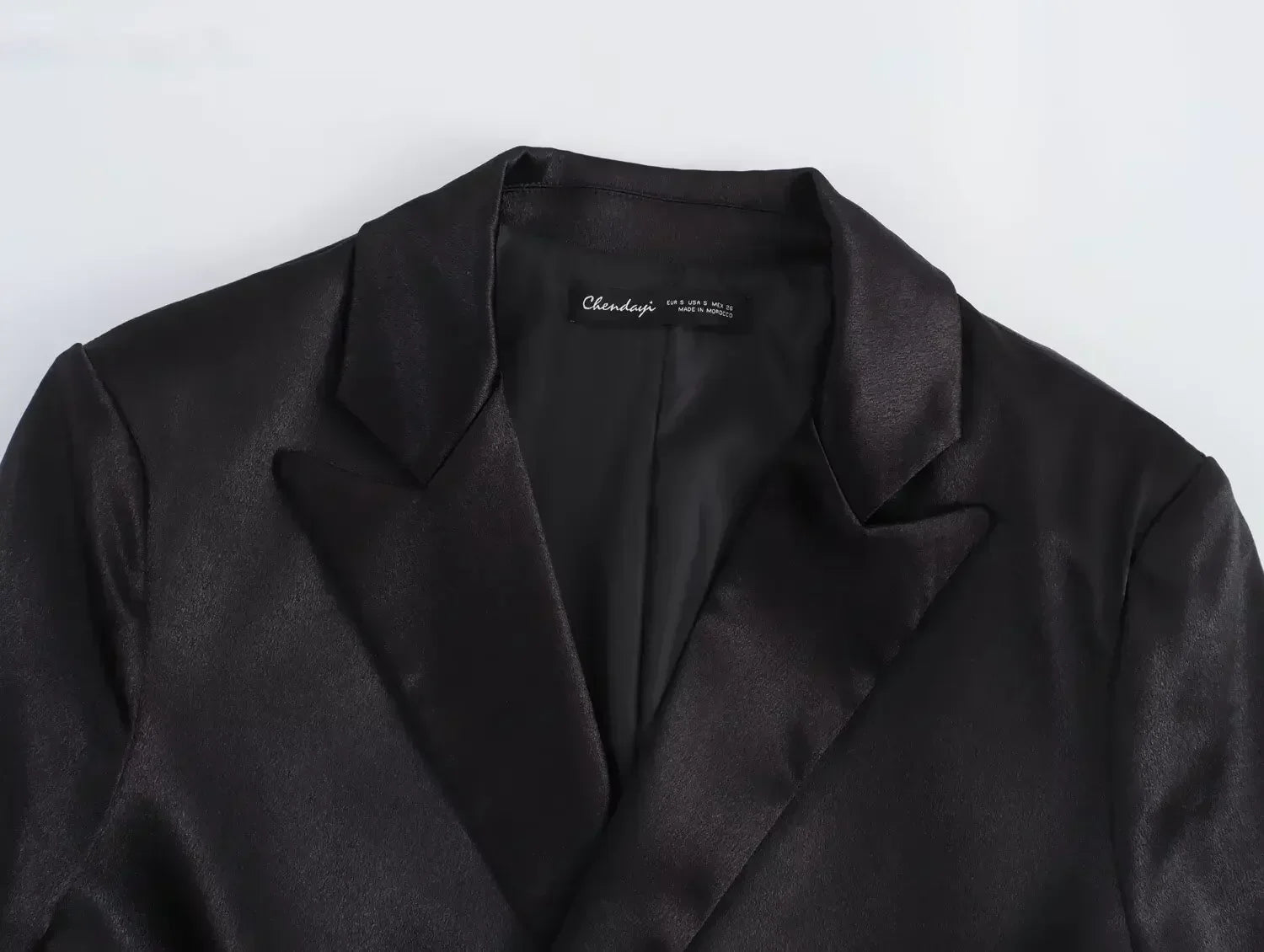 Ladies' new fashion lace up decoration casual double breasted pleated suit coat retro long sleeved pocket women's coat chic top