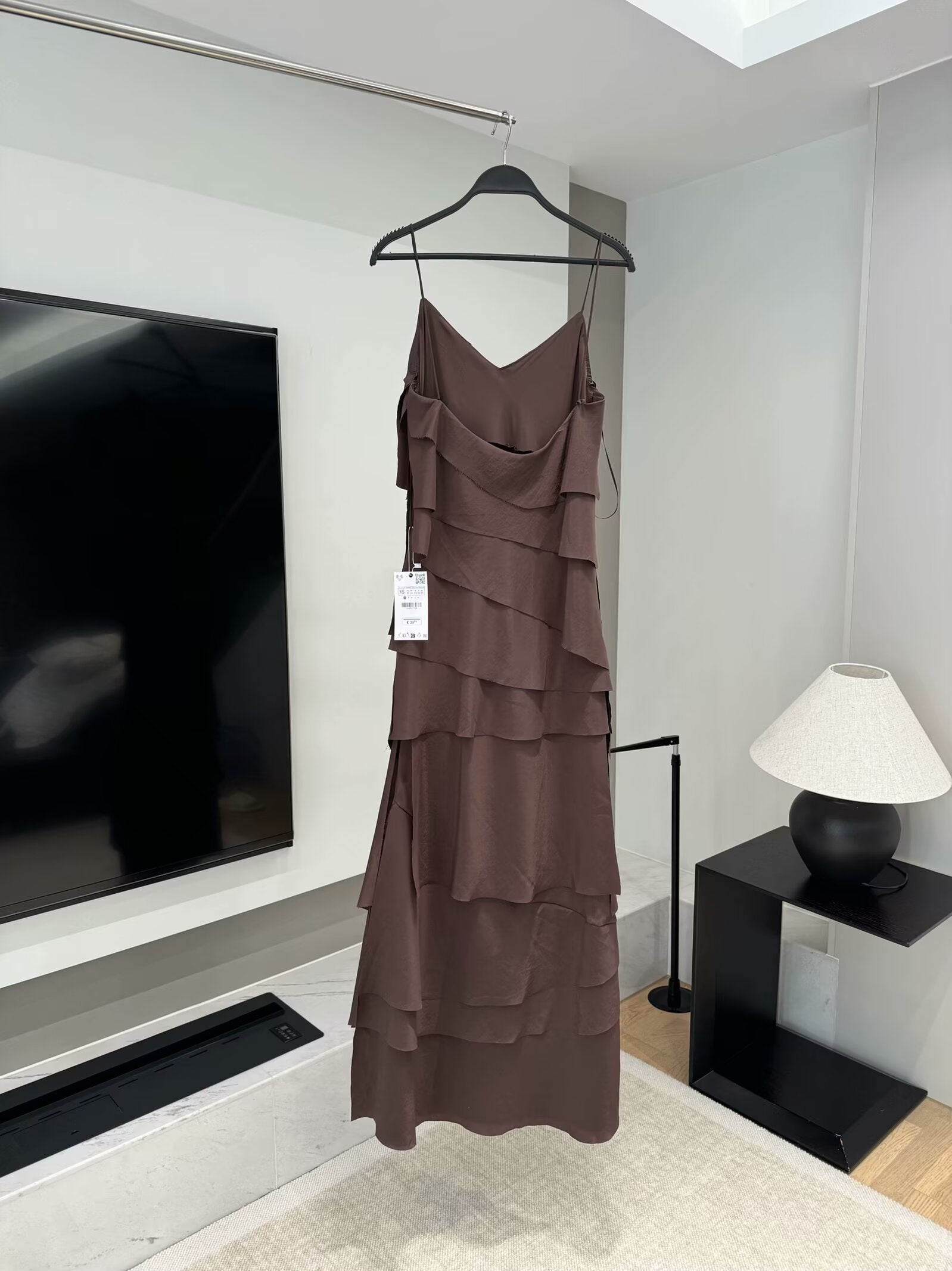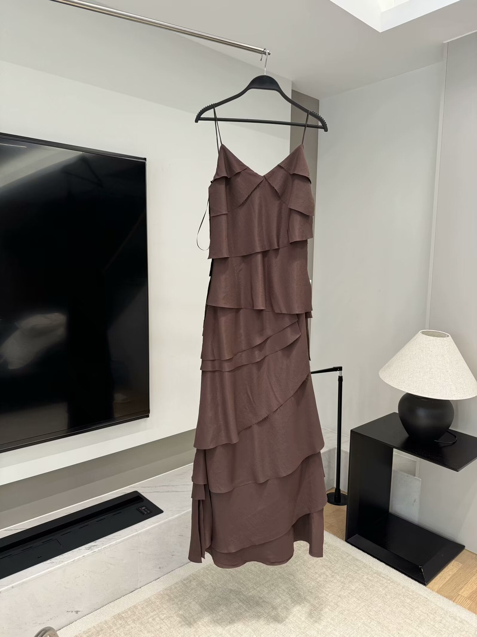 Ladies' new fashion layered decoration sleeveless V-neck suspender MIDI dress
