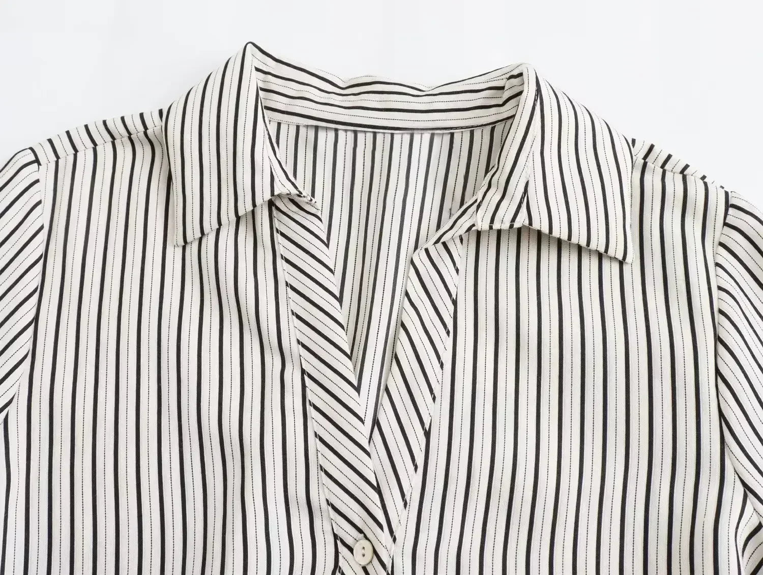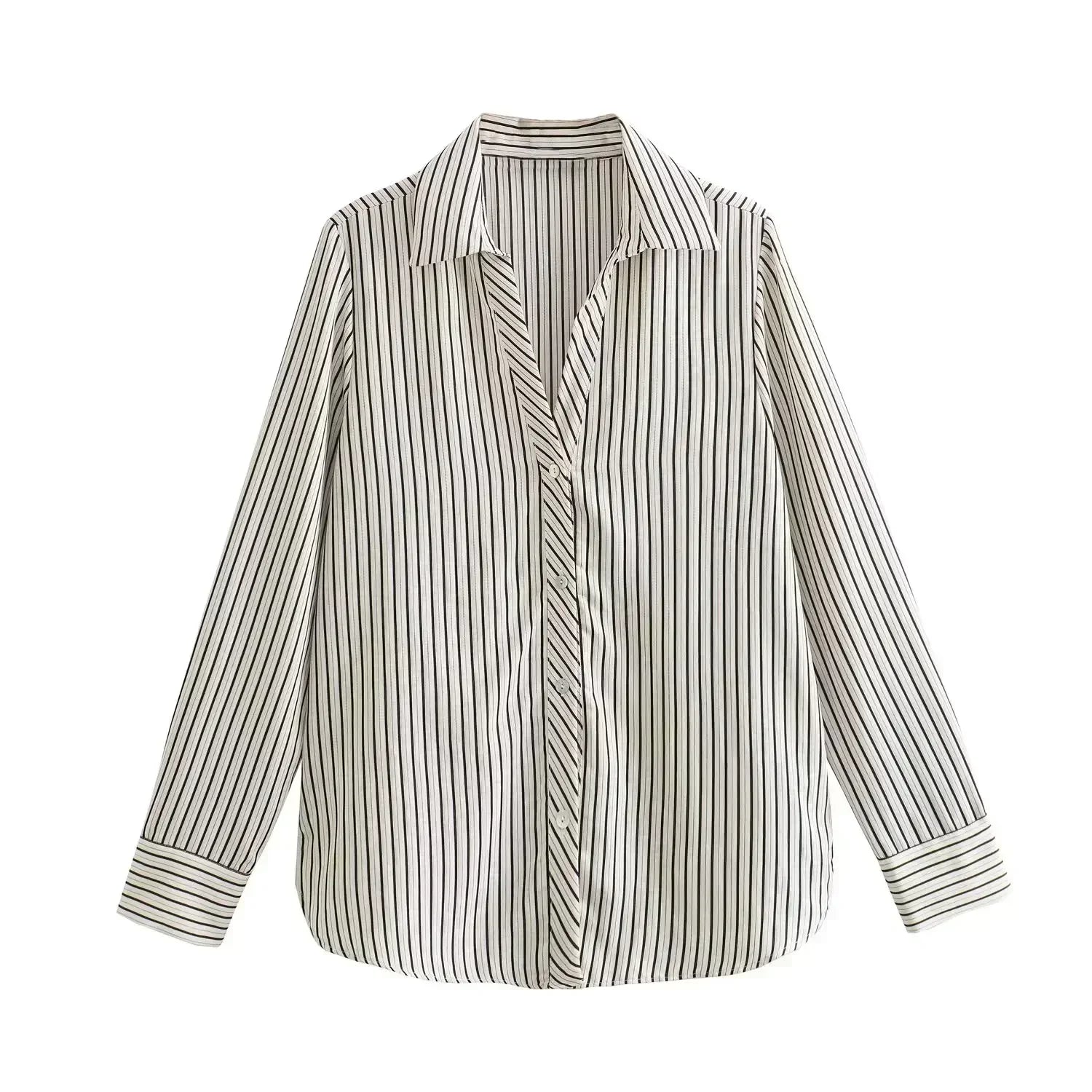 Women 2023 New Fashion Versatile style Striped casual Blouses Vintage Long Sleeve Button-up Female Shirts Chic Tops