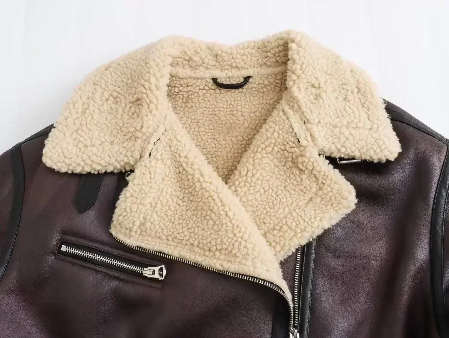 Women New Fashion With belt Warm two-sided Fur Faux Leather Jacket Coat Vintage Long Sleeve Zipper Female Outerwear Tops