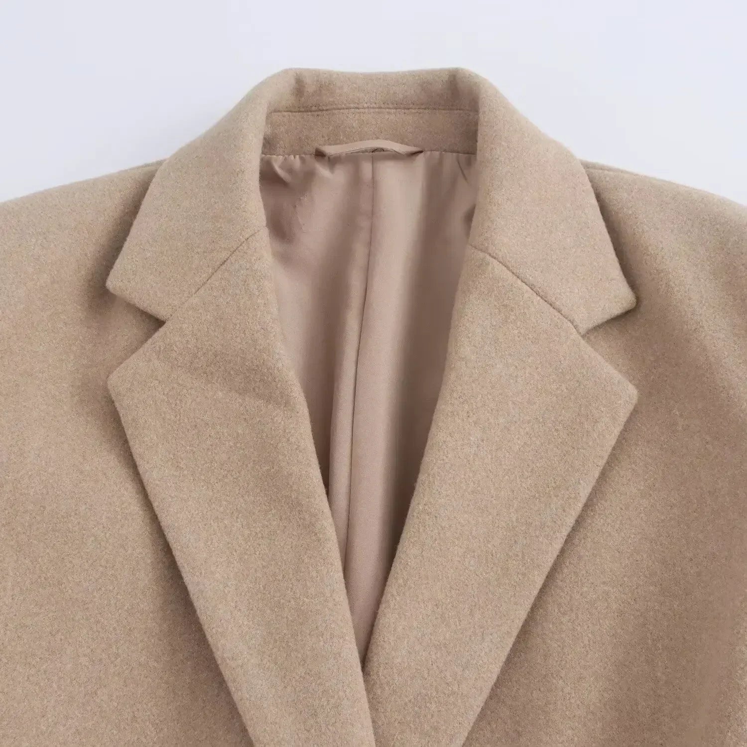 Women's 2024 new fashion loose long style single breasted soft woolen coat retro long sleeved side pocket women's coat chic top