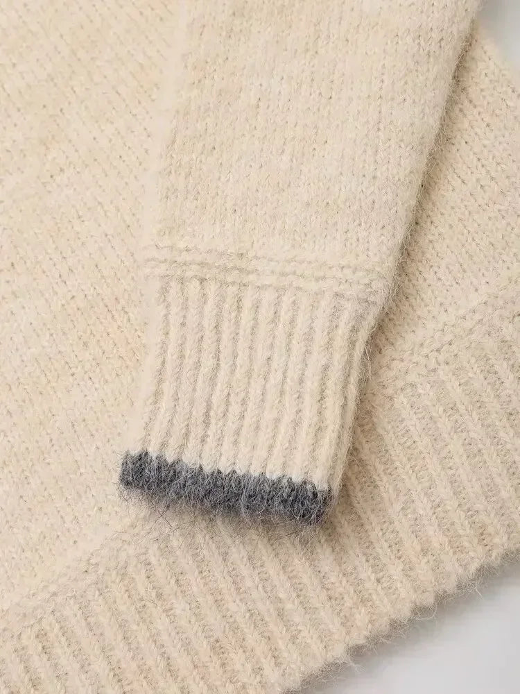 Women's 2024 new fashion multi-color casual contrasting O Neck knitted sweater retro long sleeved women's pullover chic top