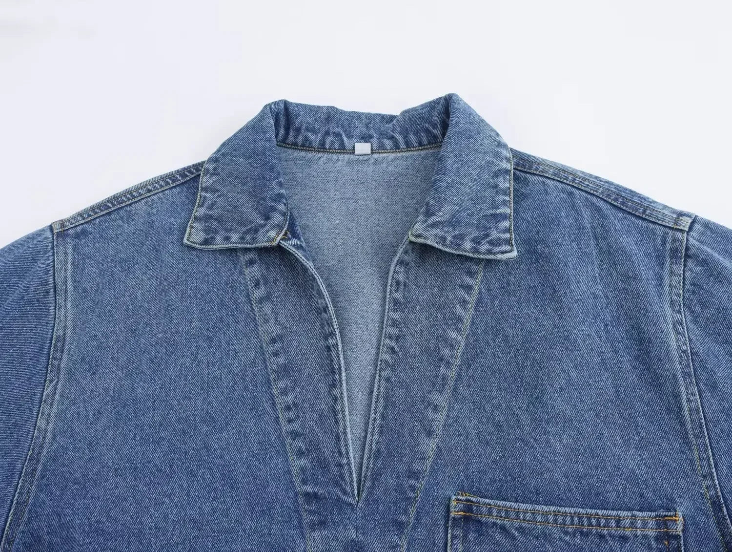 Women's 2024 new fashion pocket decoration loose polo shirt collar denim shirt coat retro long sleeved women's shirt chic top