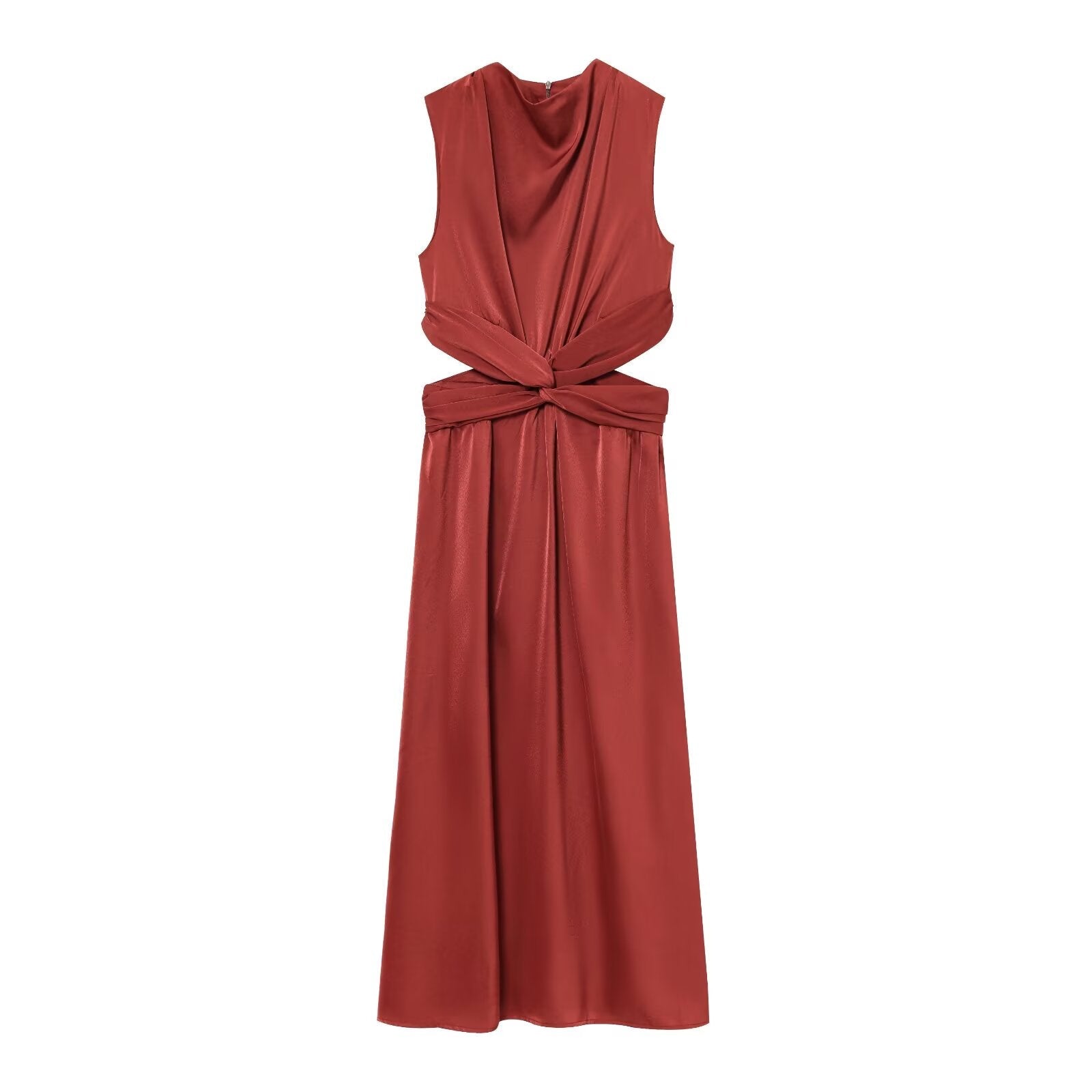 Women's 2025 chic fashion opening design satin midi dress retro sleeveless women's dress