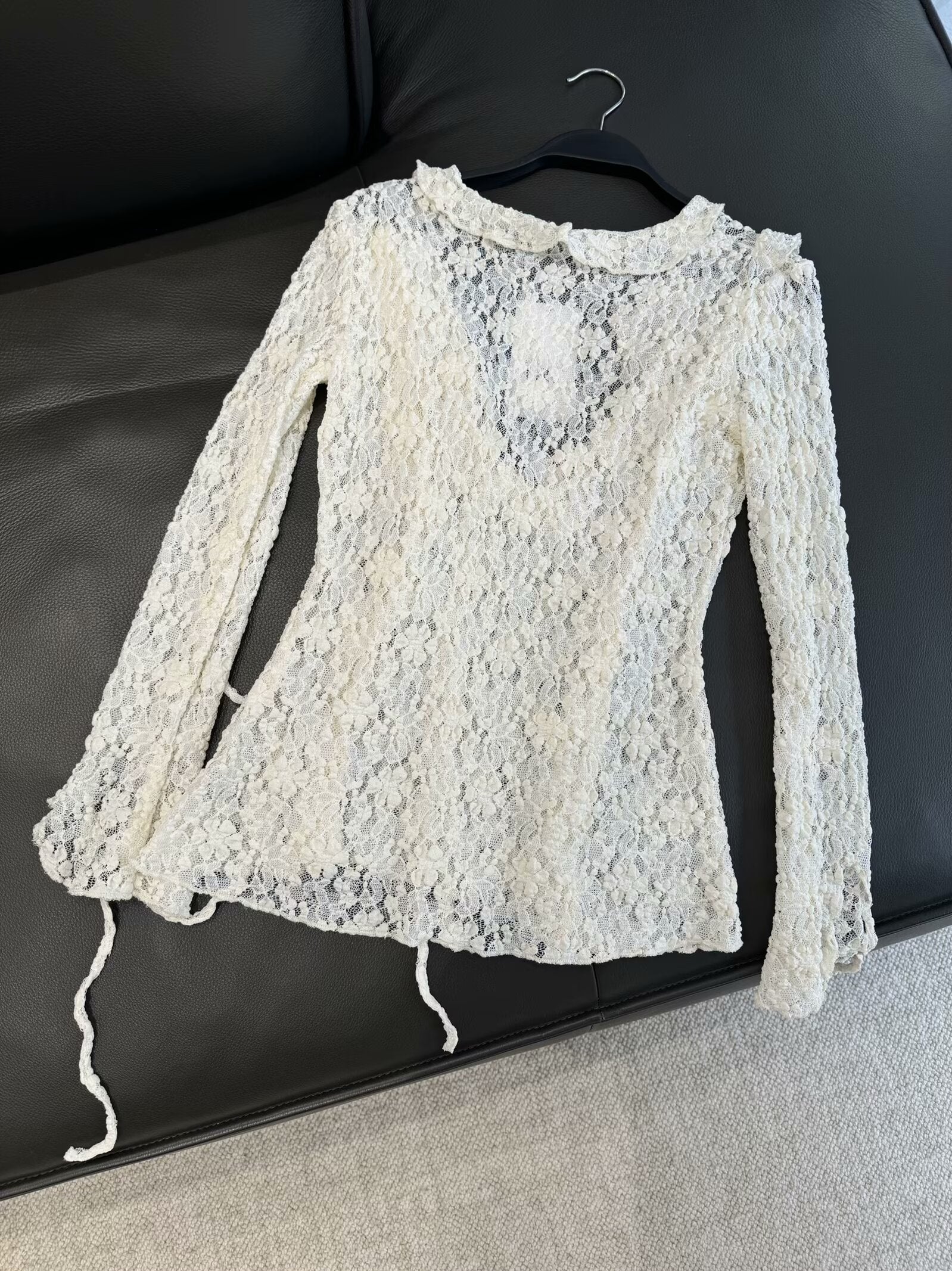 Women's 2025 fashion laminated decorative translucent shirt retro long-sleeved blouse chic top