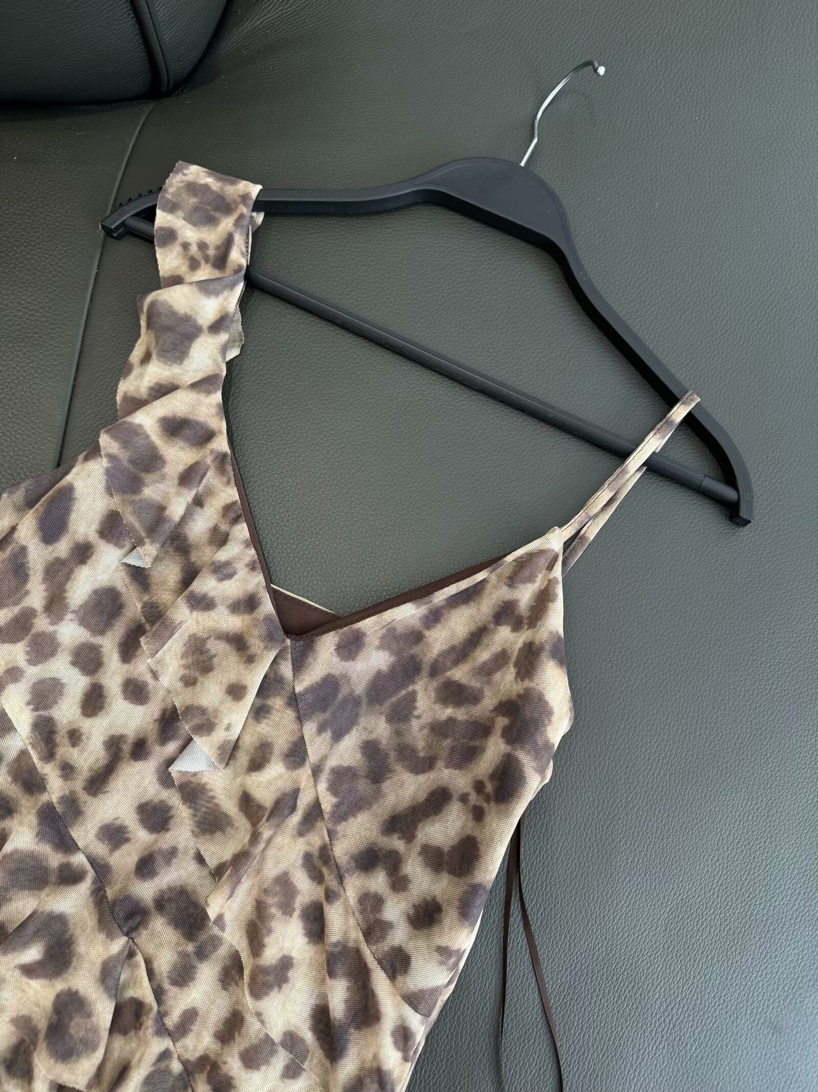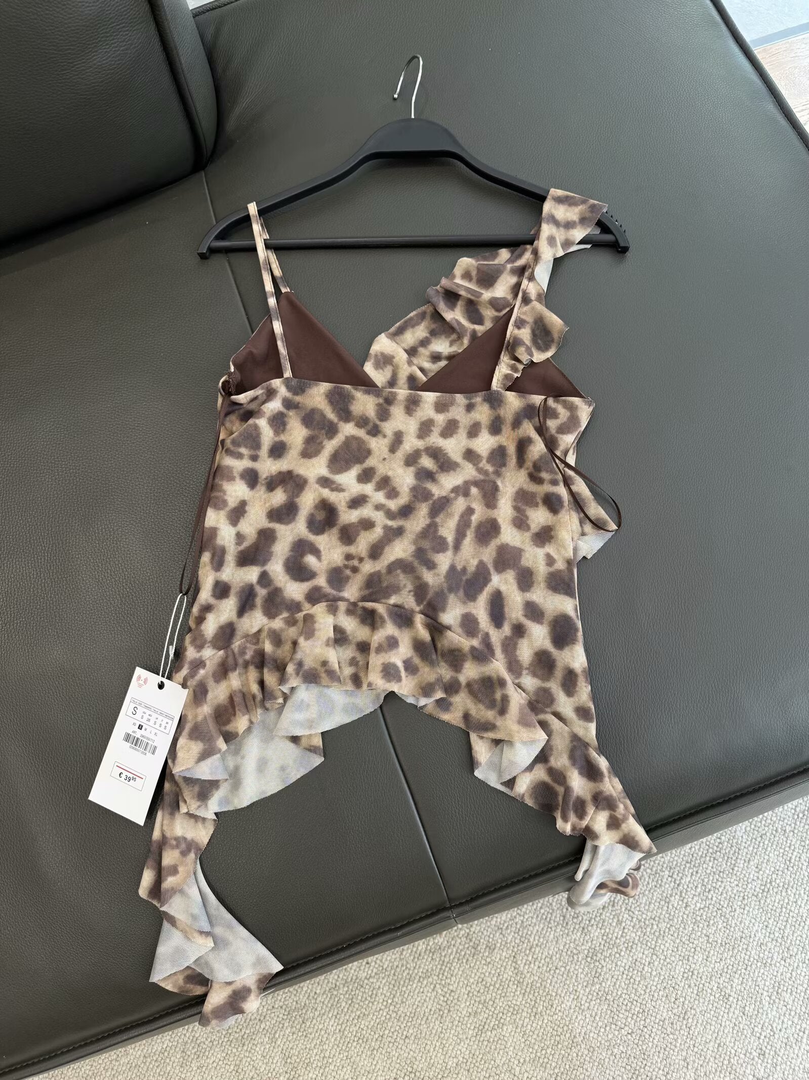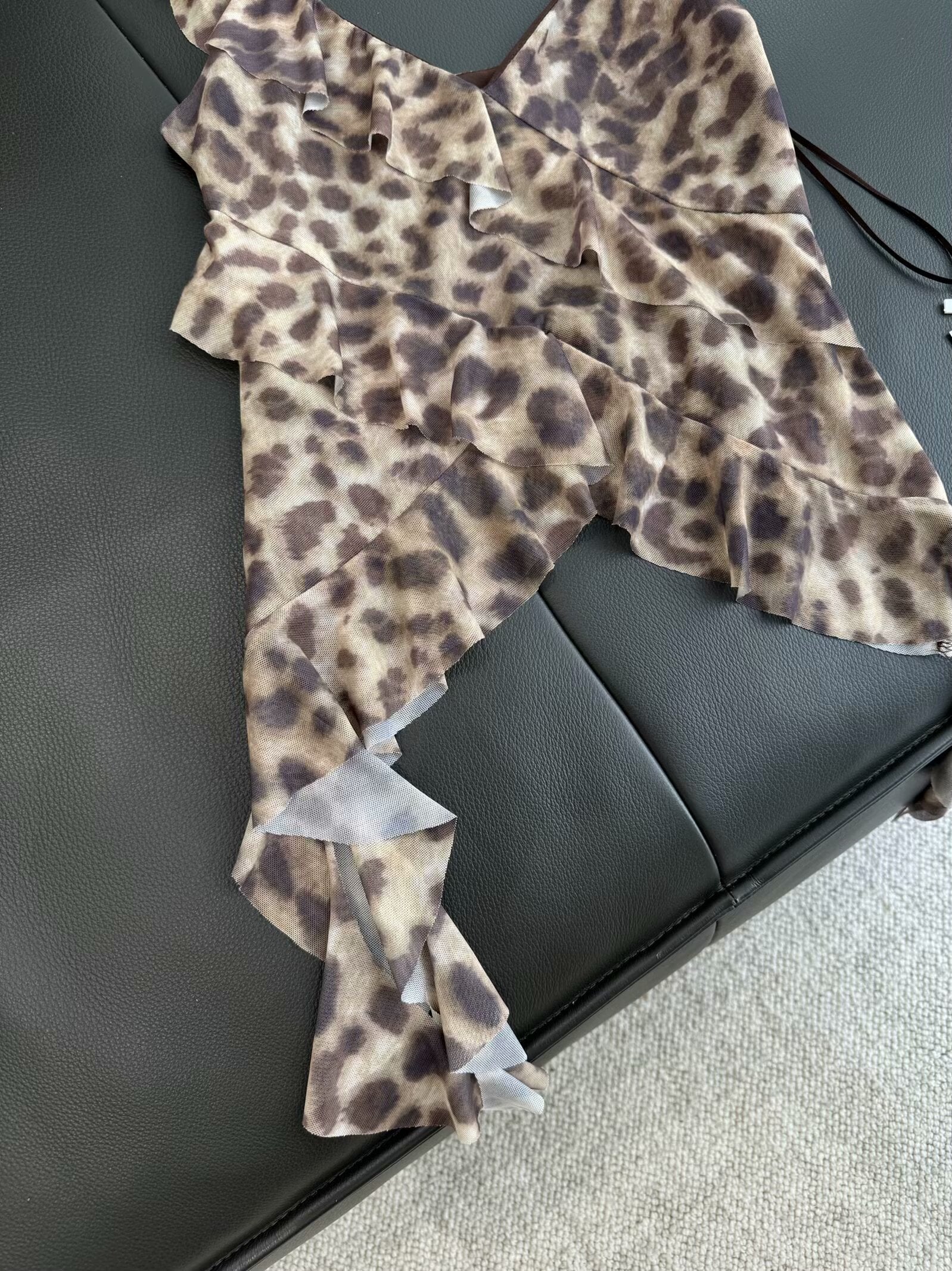 Women's 2025 new fashion layered decoration printed tulle suspender top