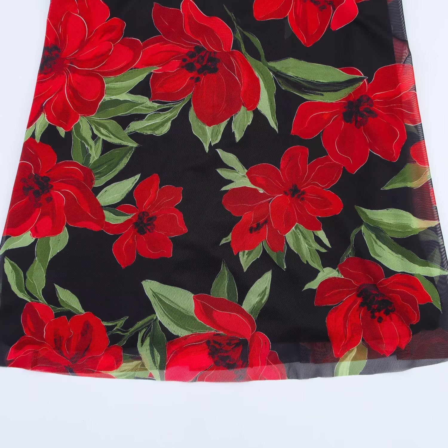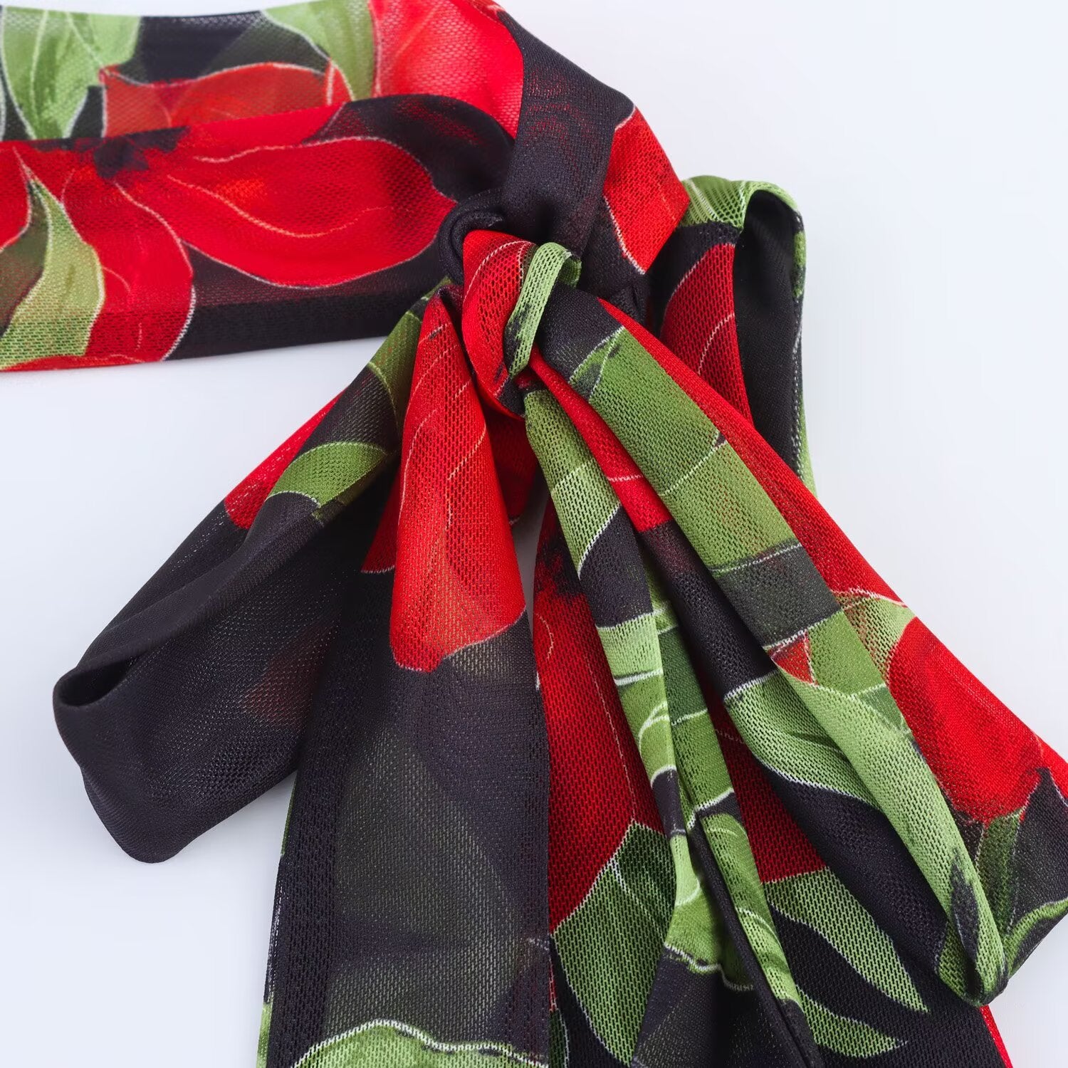 Women's 2025 New Fashion Printed Tulle Hanging Neck Collar Midi Dress