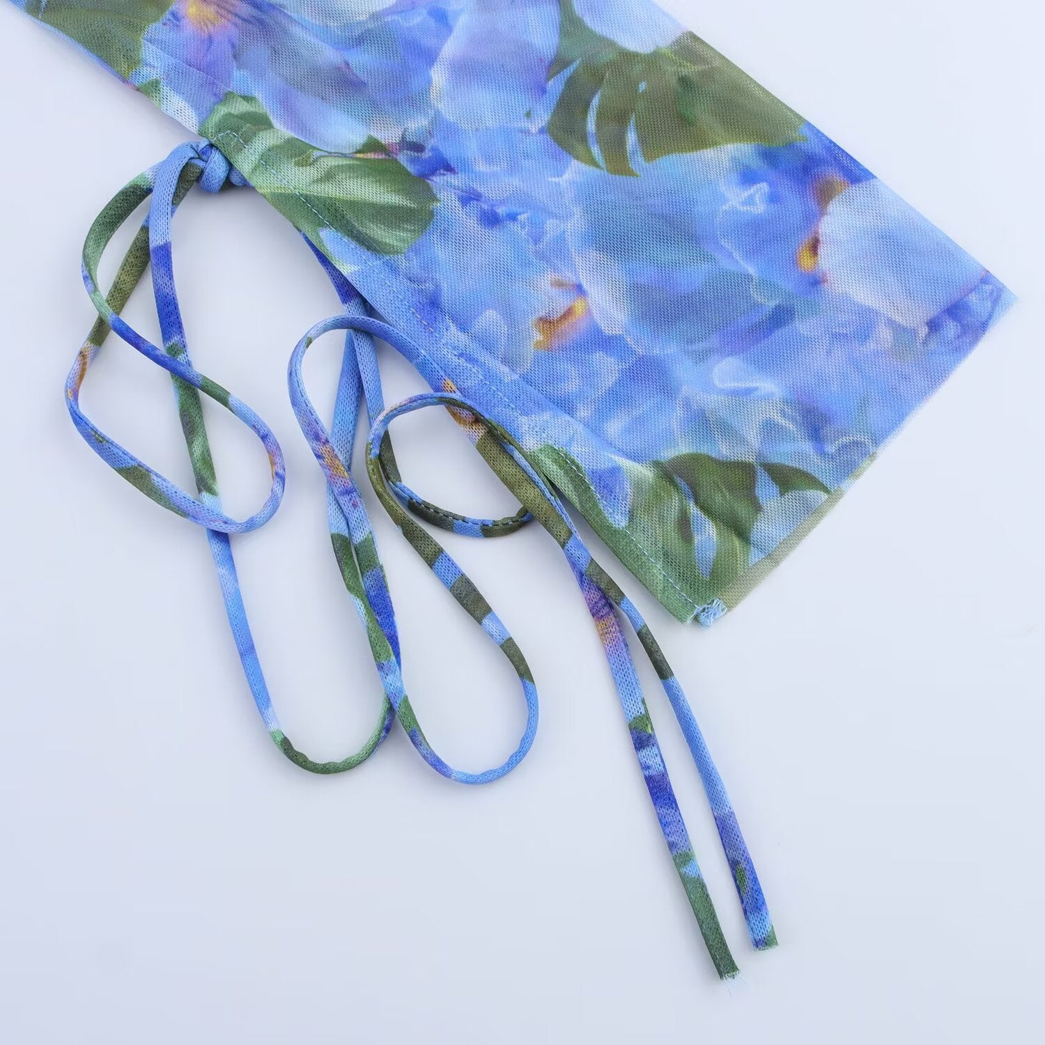 Women's 2025 New Fashion Printed Tulle suspender Mini Dress