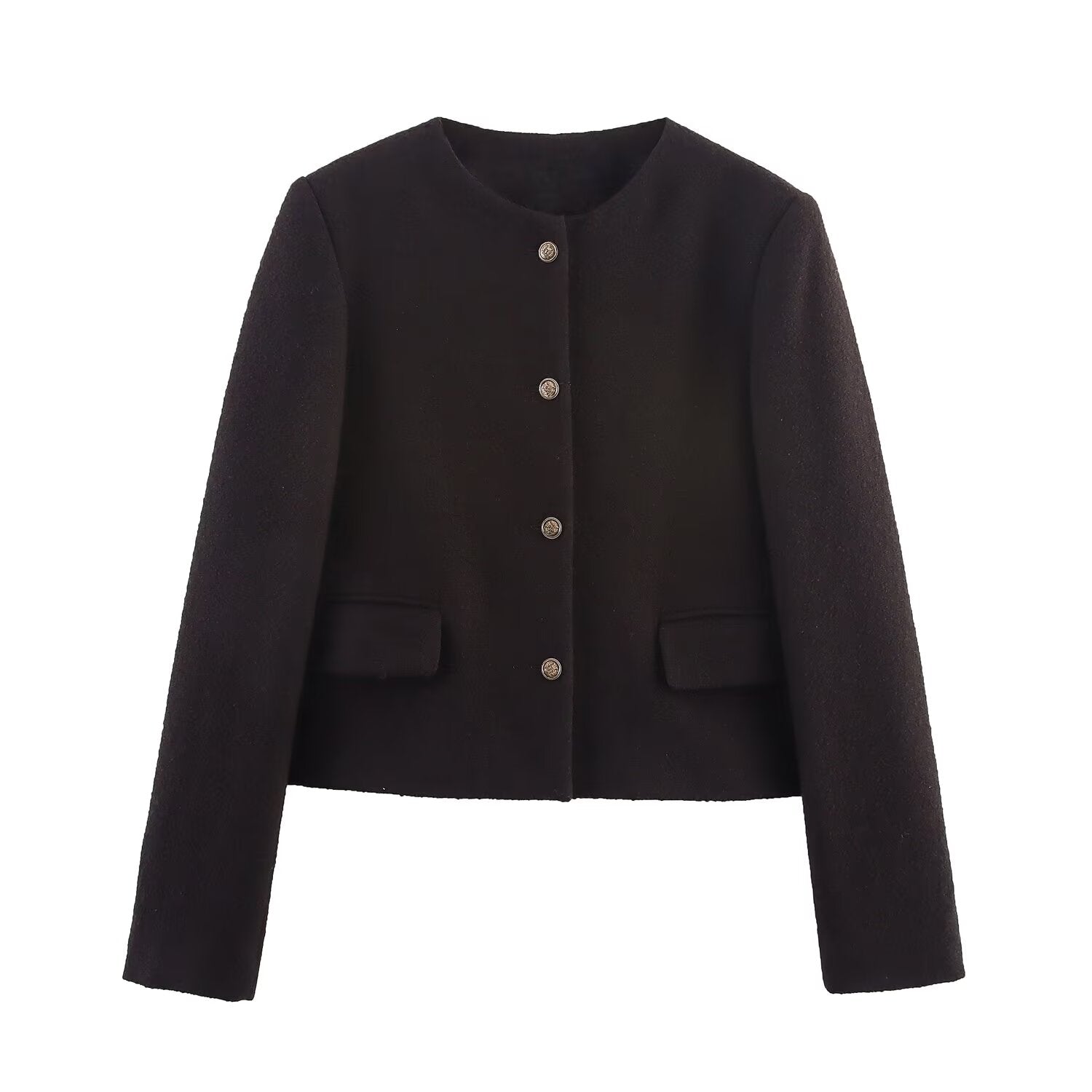 Women's autumn fashion short O Neck Button-up woolen coat
