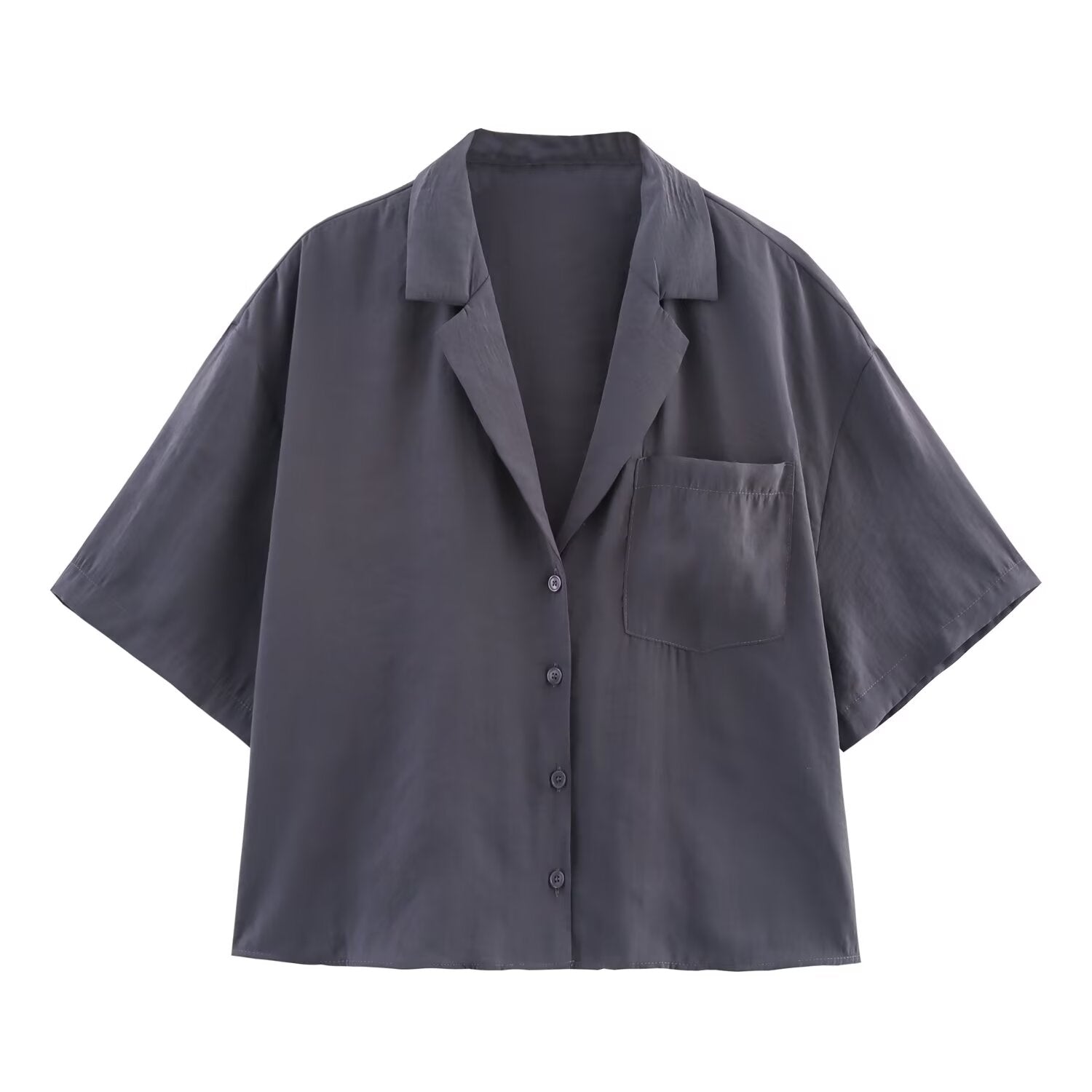 Women's fashion short sleeved single breasted V-neck shirt+Shorts suit