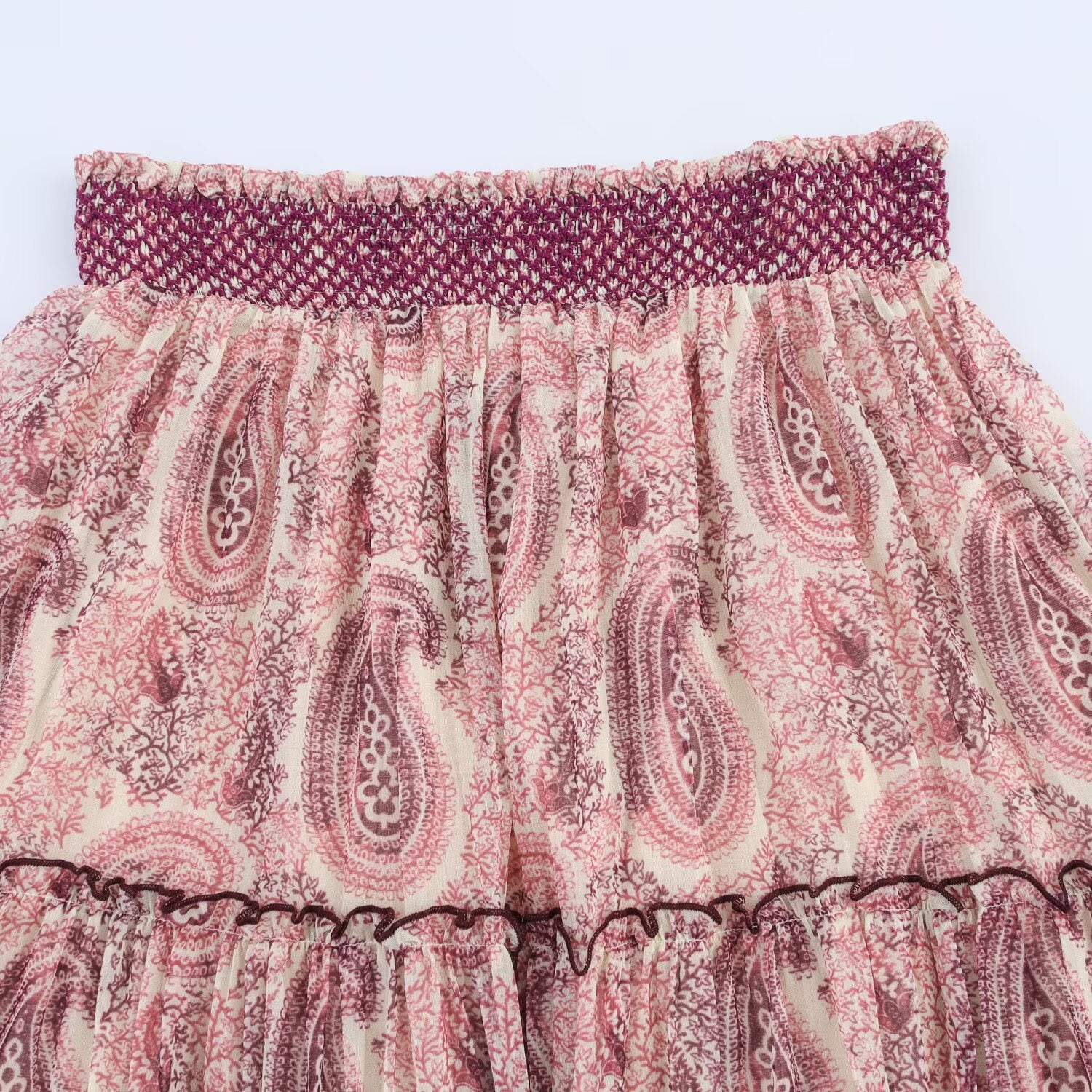 Women's new chic Fashion loose casual versatile pleated printed Midi skirt retro elastic waist women's skirt