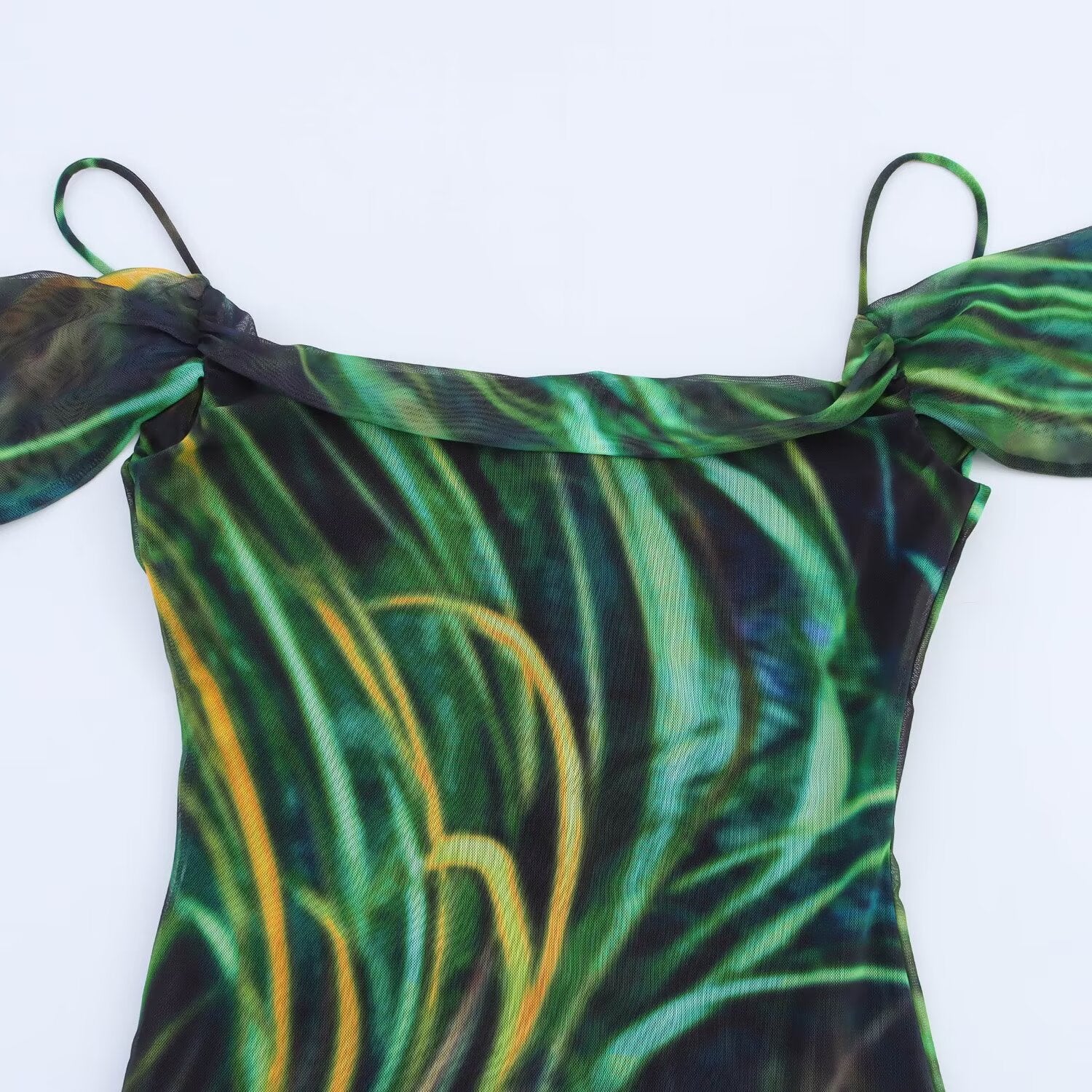 Women's new chic Fashion printed tulle suspender Midi dress retro off shoulder women's dress