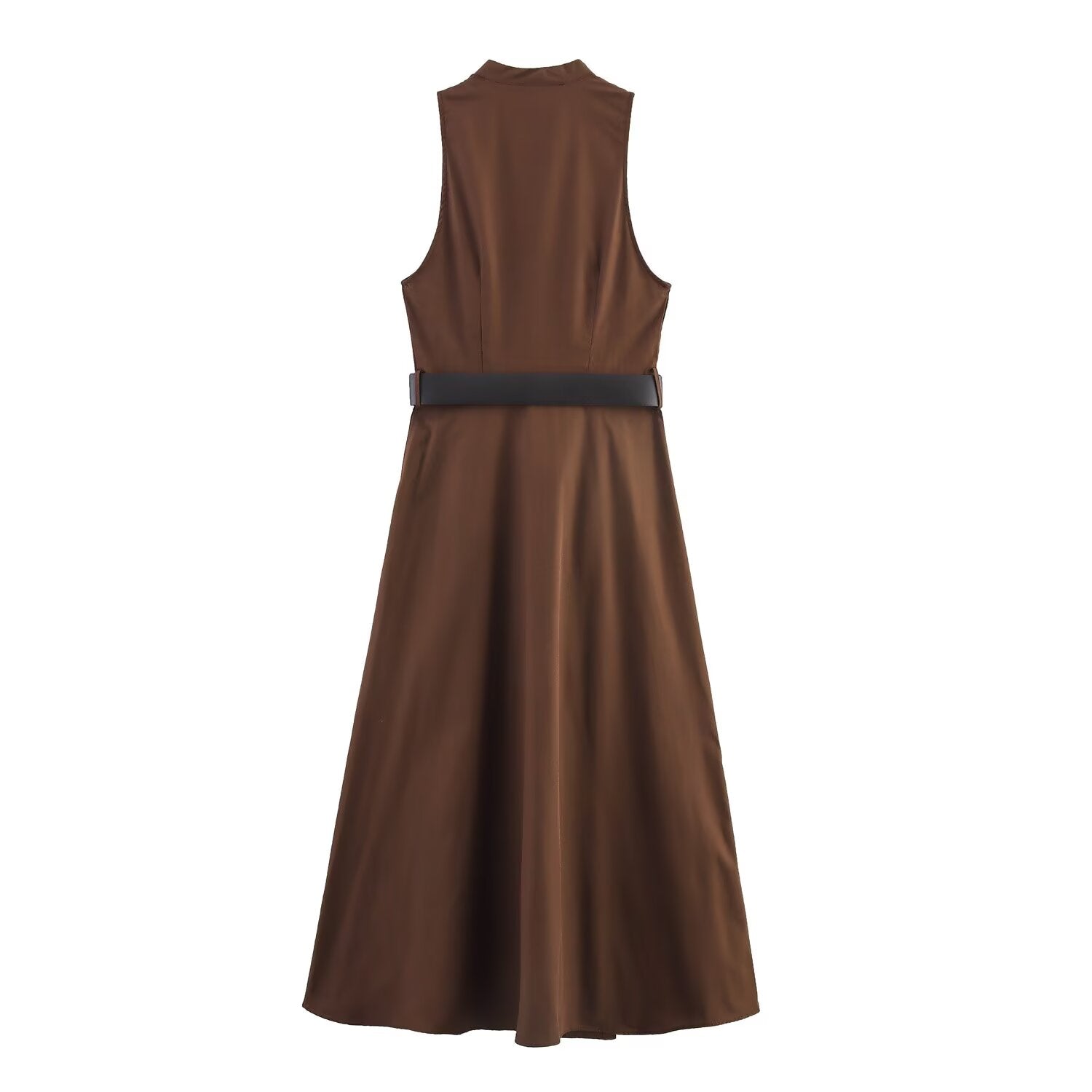 Women's new chic fashion With belt casual single breasted poplin MIDI dress retro sleeveless side pocket women's dress