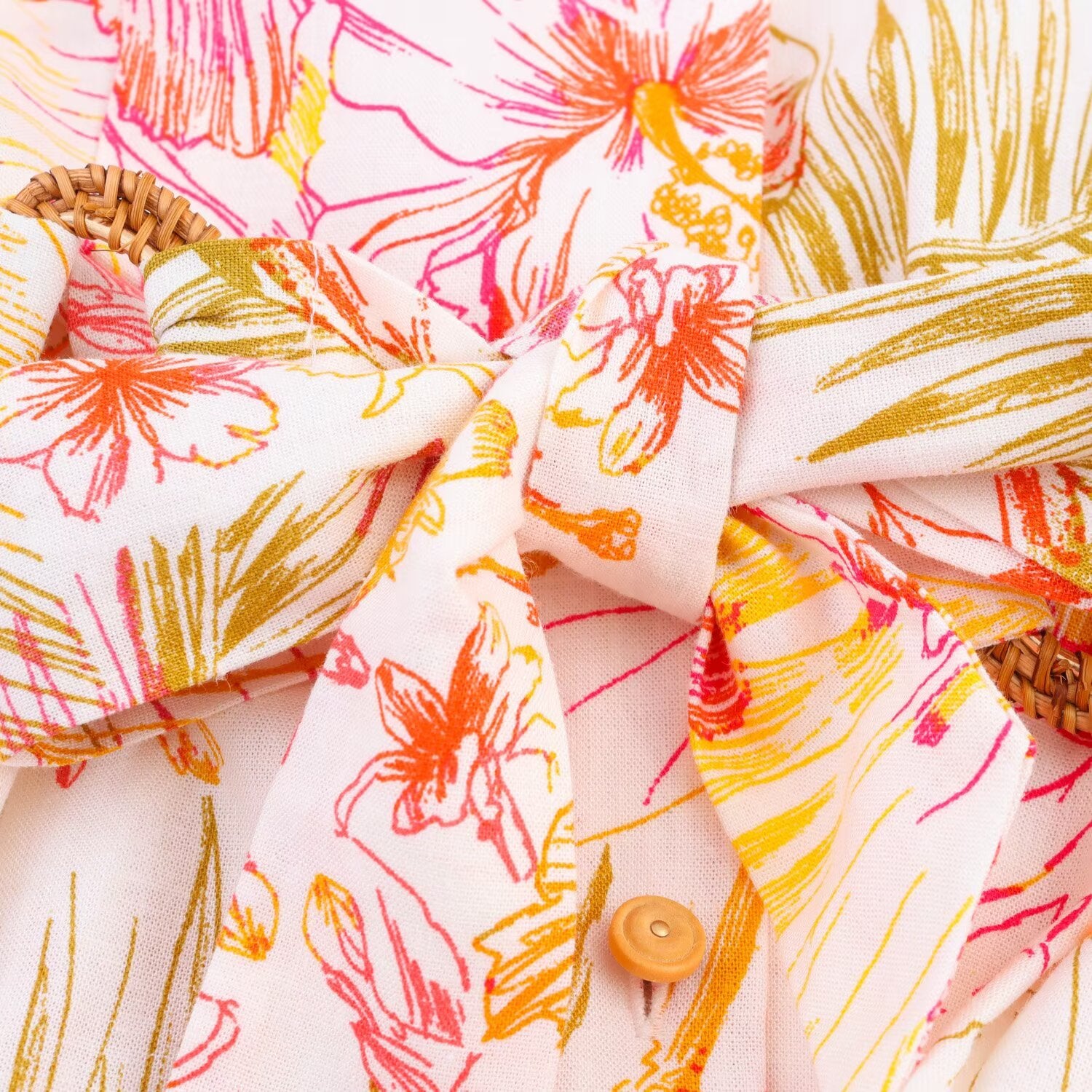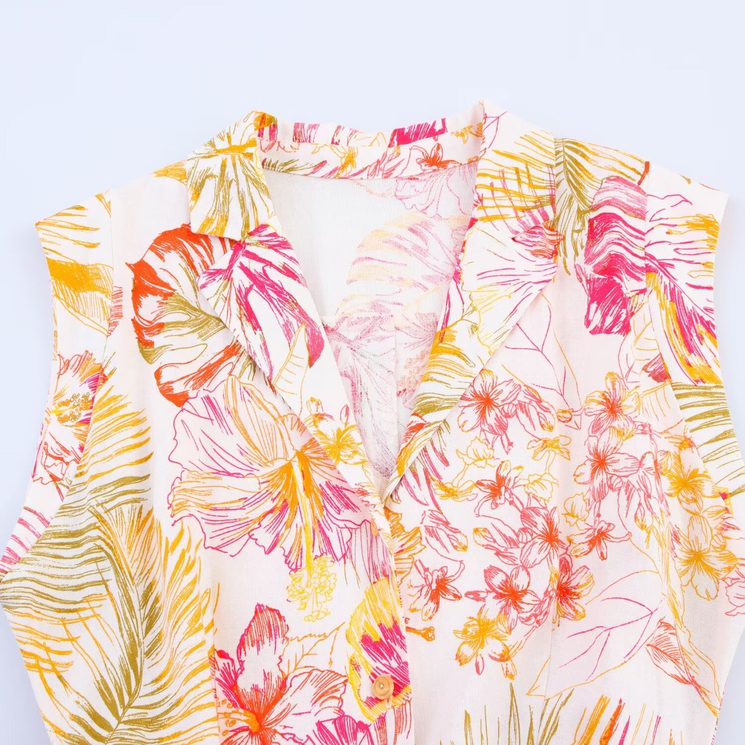 Women's New Chic Fashion With Belt Linen Blended Printed Midi Dress Retro Sleeveless Button up Women's Dress