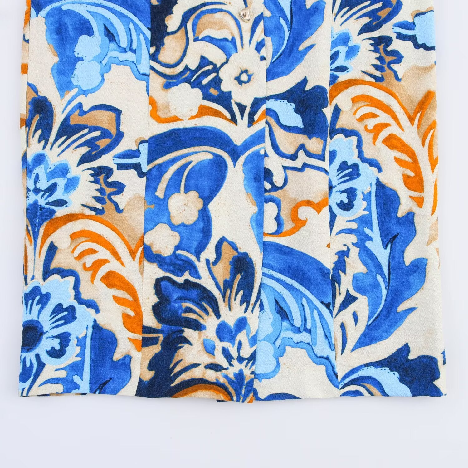 Women's new chic fashion With Belt slim single breasted printed shirt style MIDI dress retro sleeveless women's dress