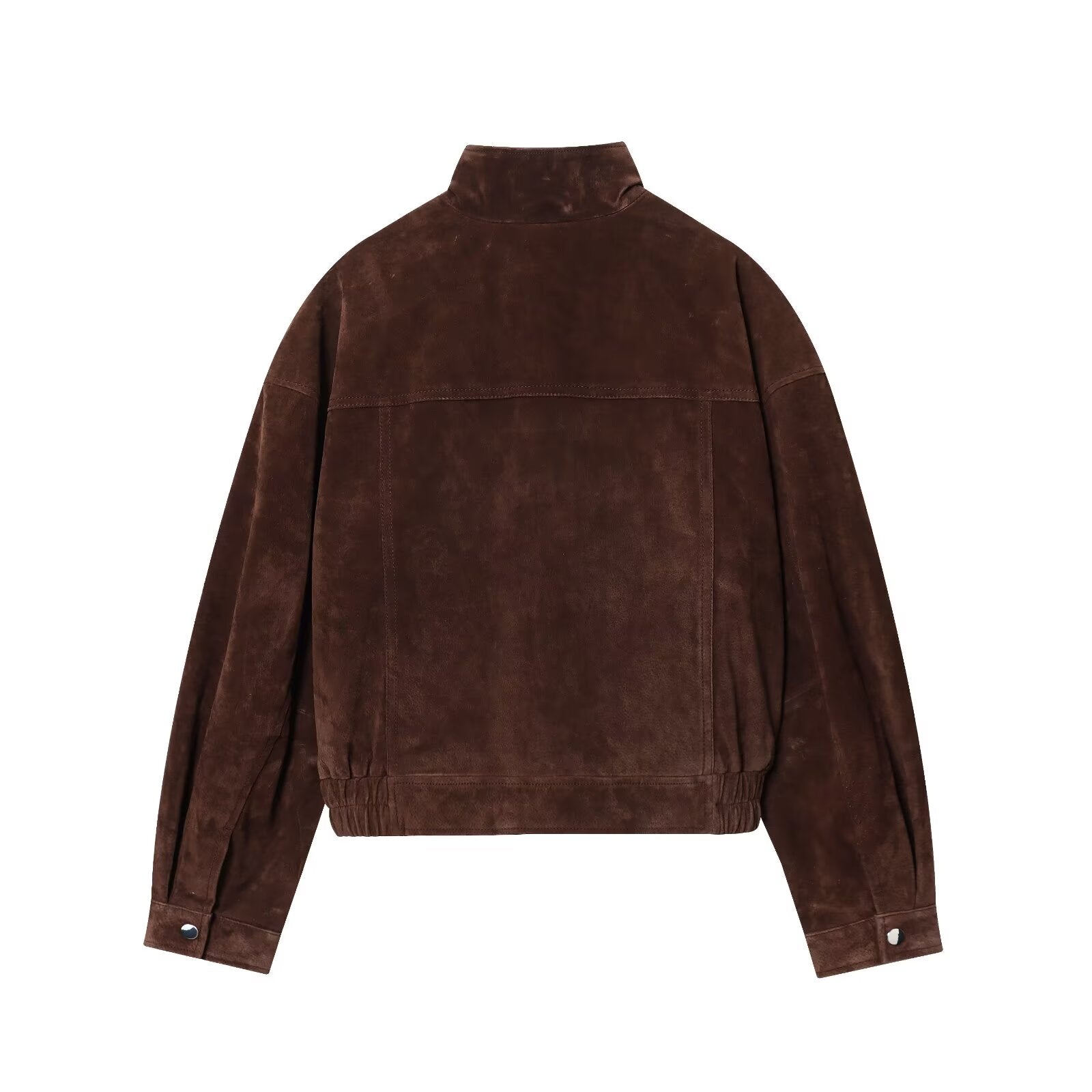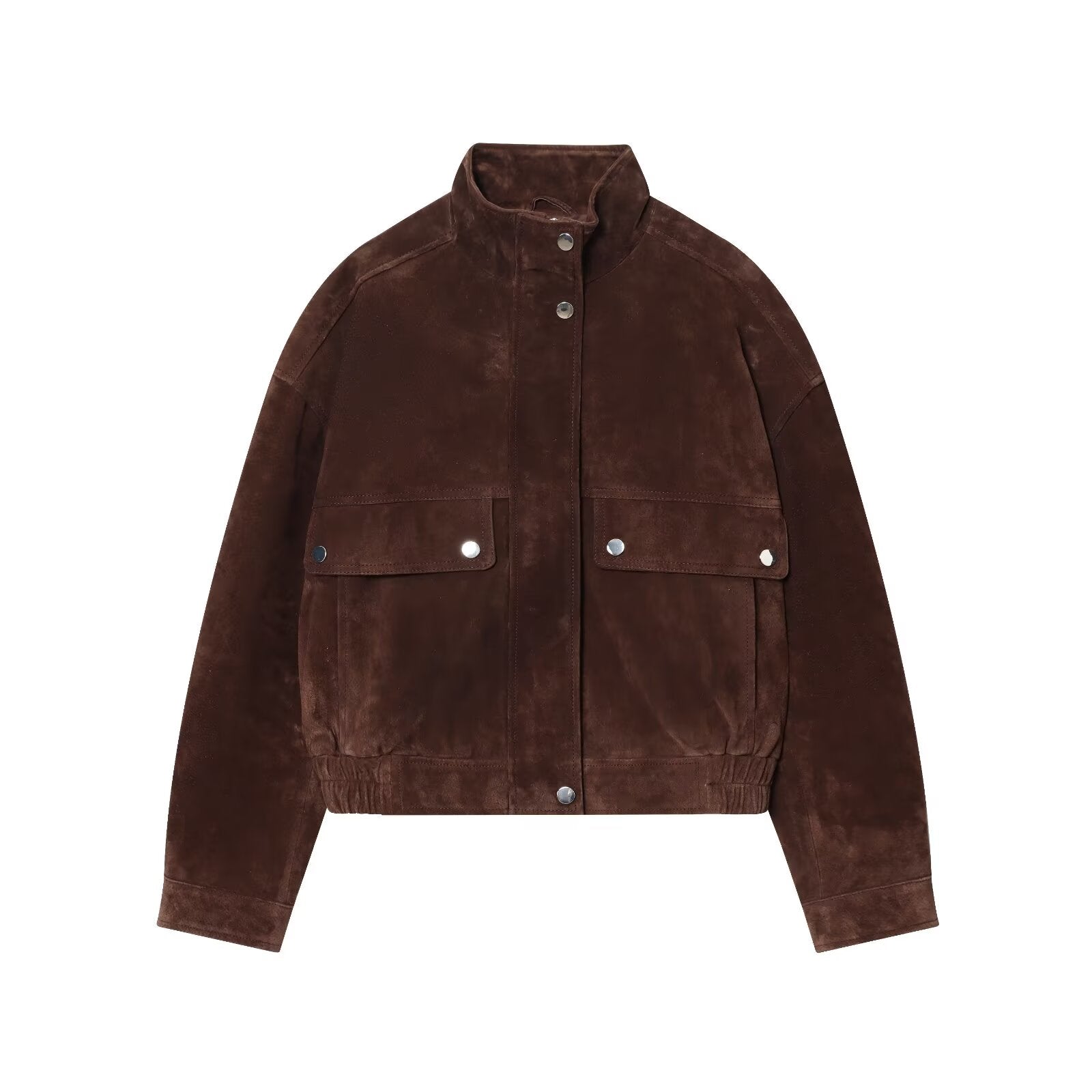 Women's new fashion anti suede effect standing collar flying jacket Coat