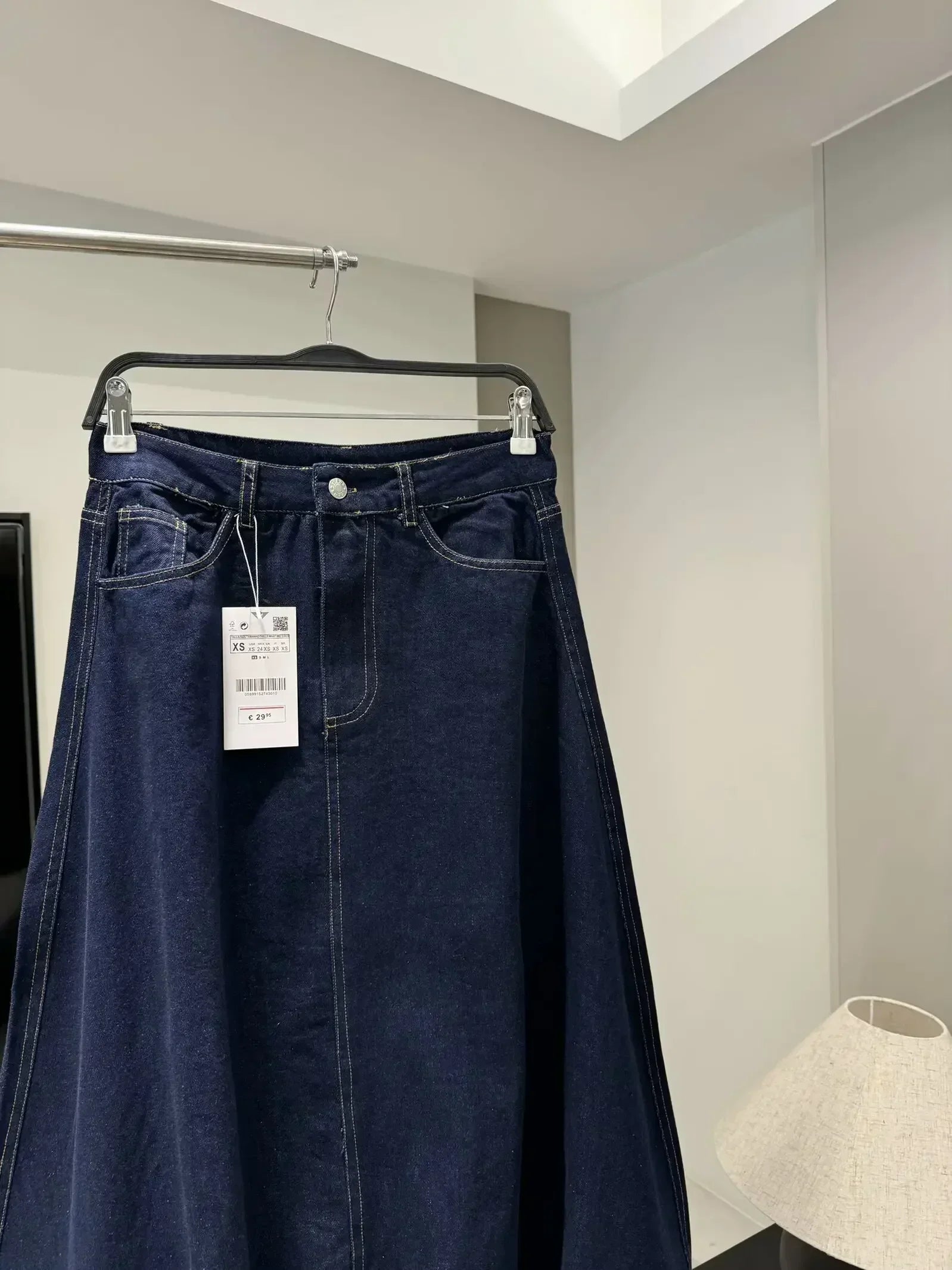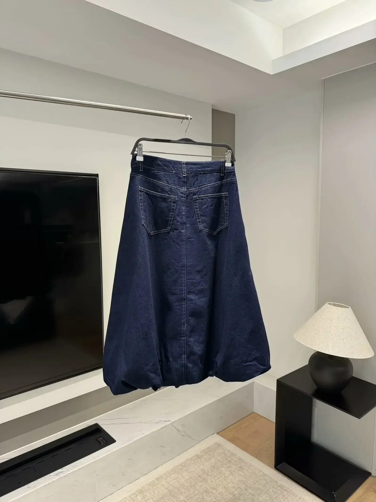 Women's new fashion balloon version casual side pocket versatile denim Midi skirt retro high waisted zipper women's skirt Mujer