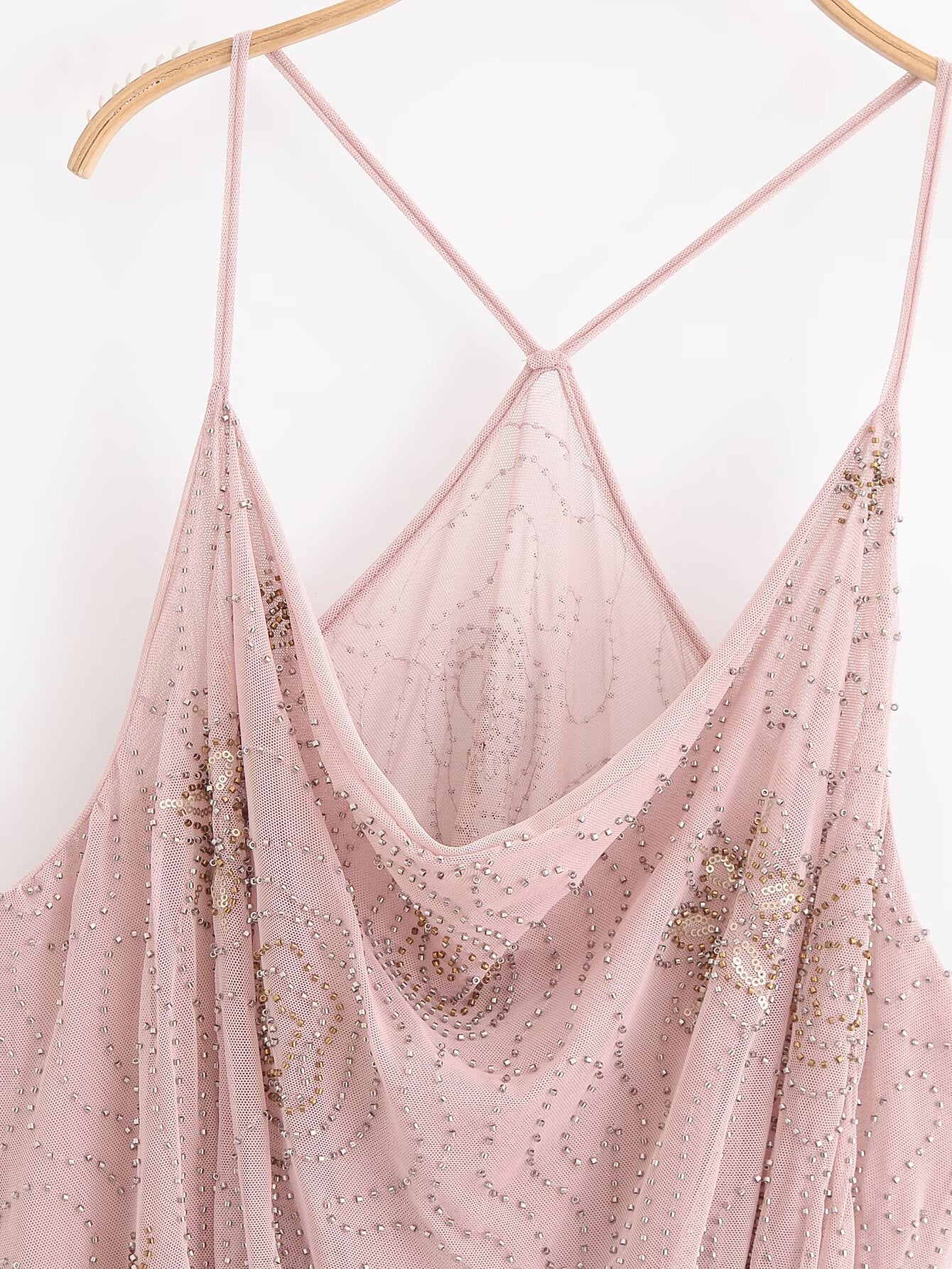 Women's new fashion bead decoration sleeveless pleated suspender mini dress