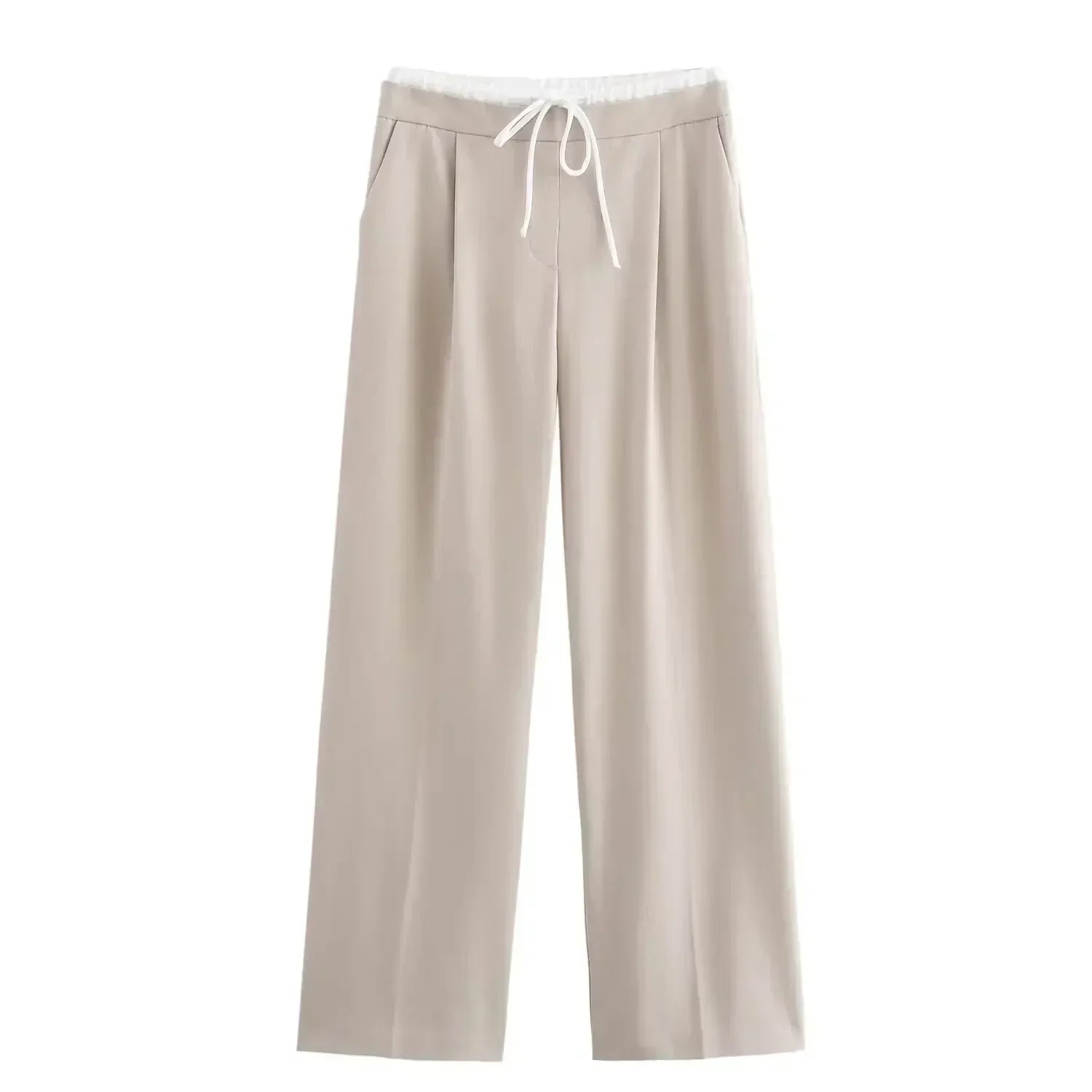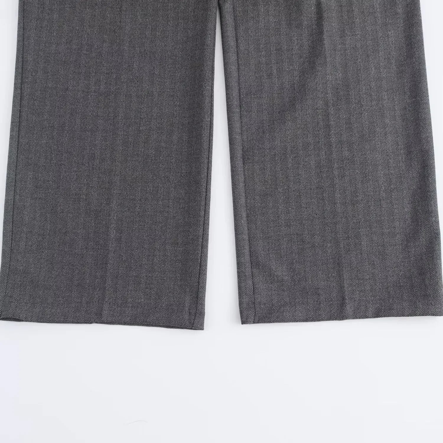 Women's new fashion bow decoration loose side pockets casual pleated wide leg pants retro high waisted zipper women's pants