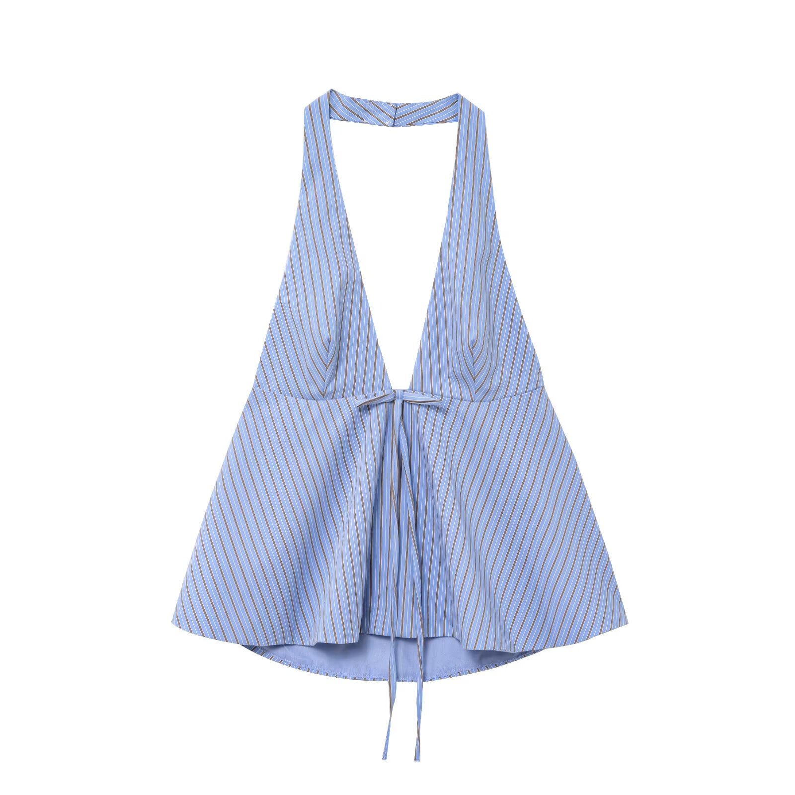 Women's new fashion bow decoration striped hanging neck collar backless top