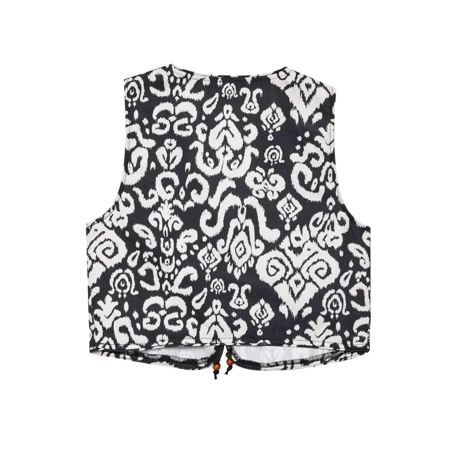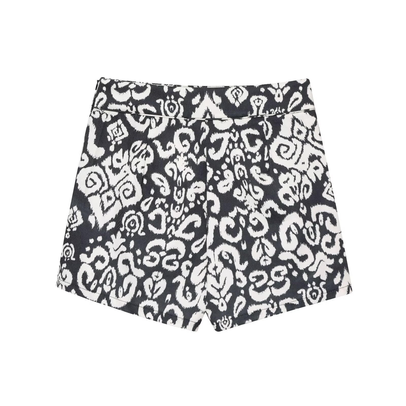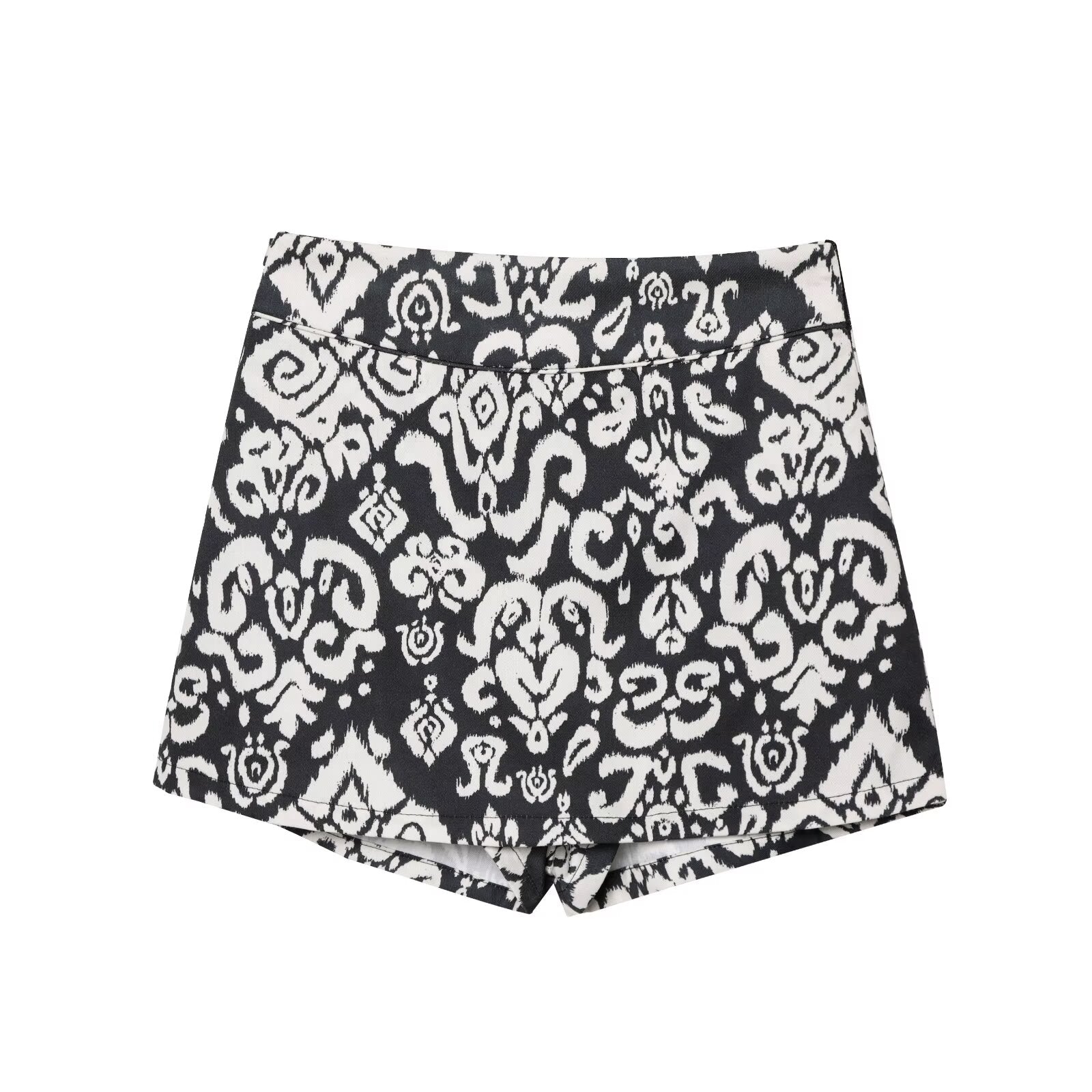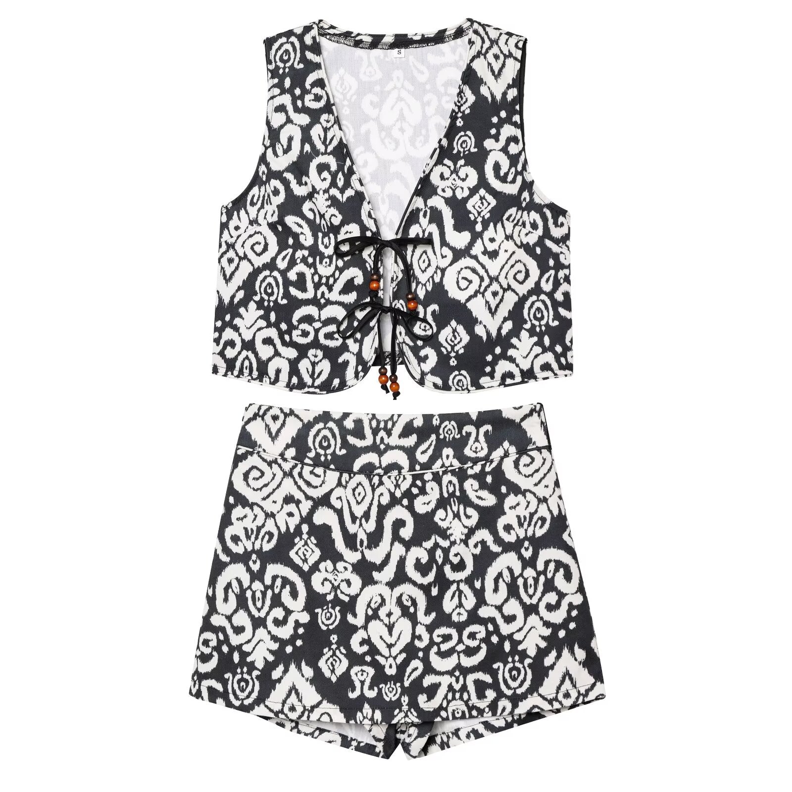 Women's new fashion bow Lace up decoration print V-neck vest+Shorts Skirts suit