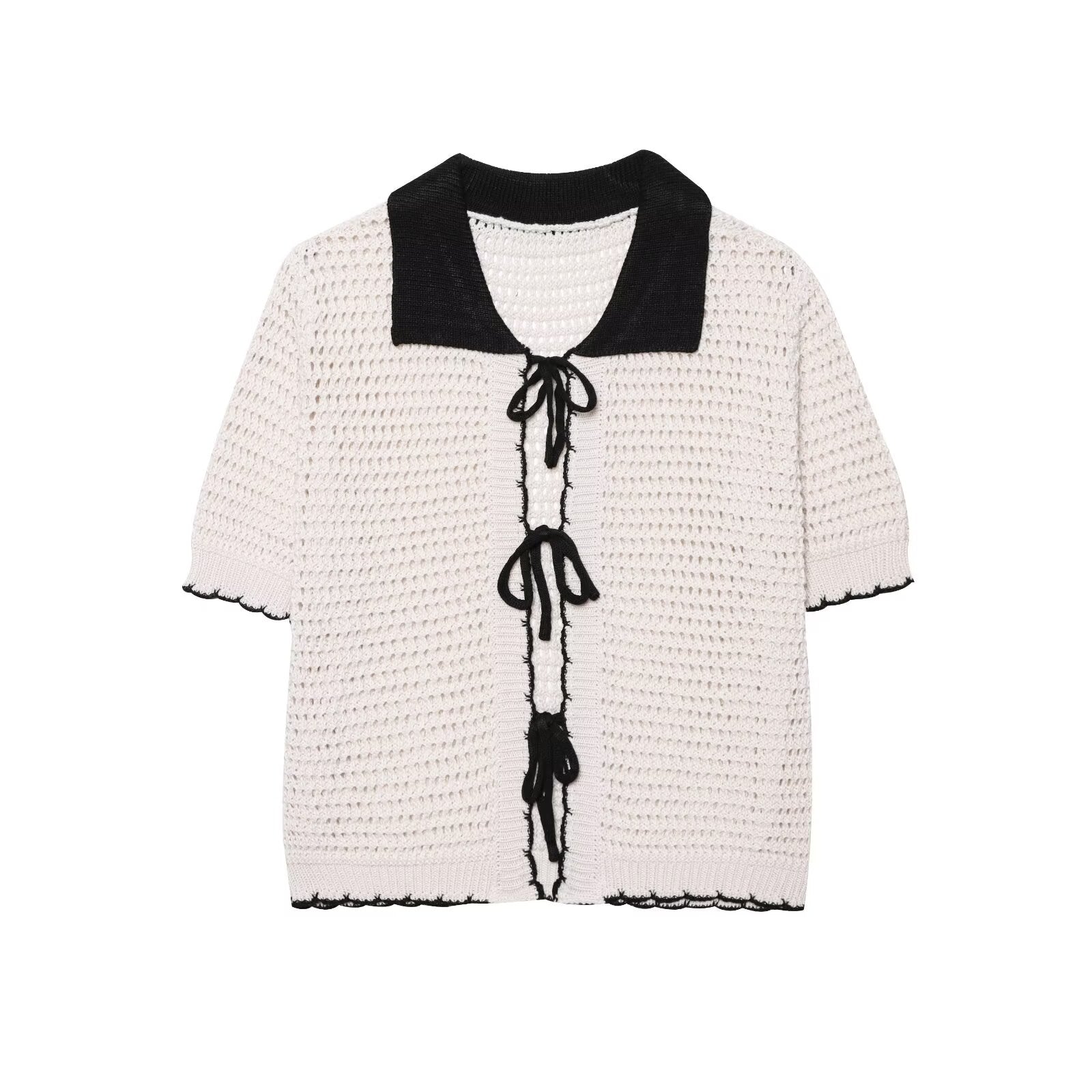 Women's new fashion bow Lace up decoration short sleeved crochet top+Vest Women's suit