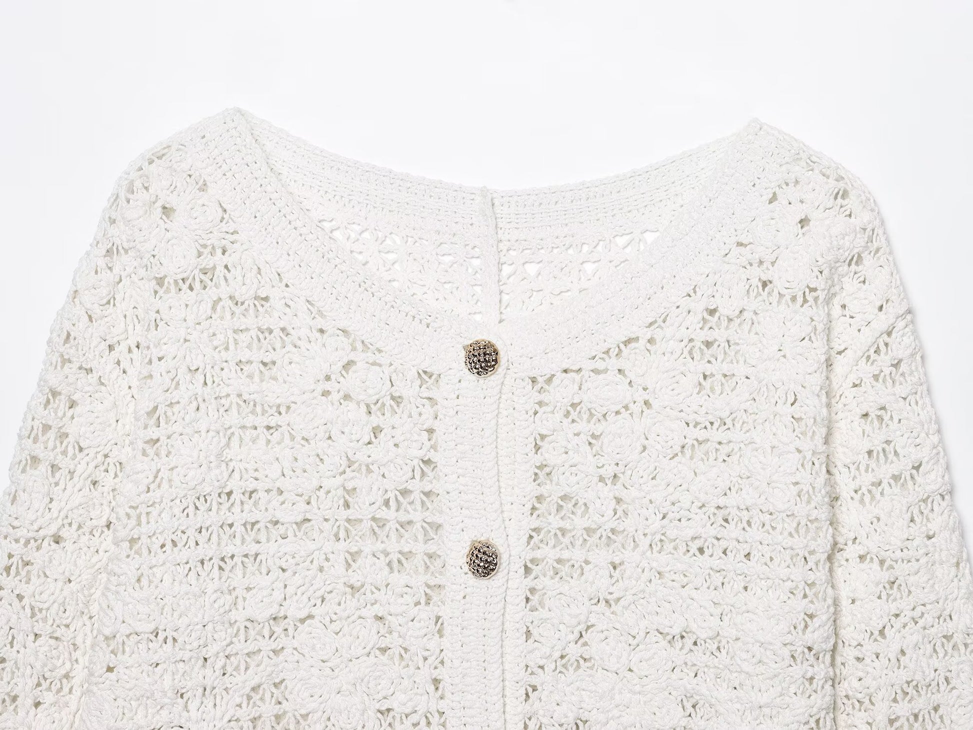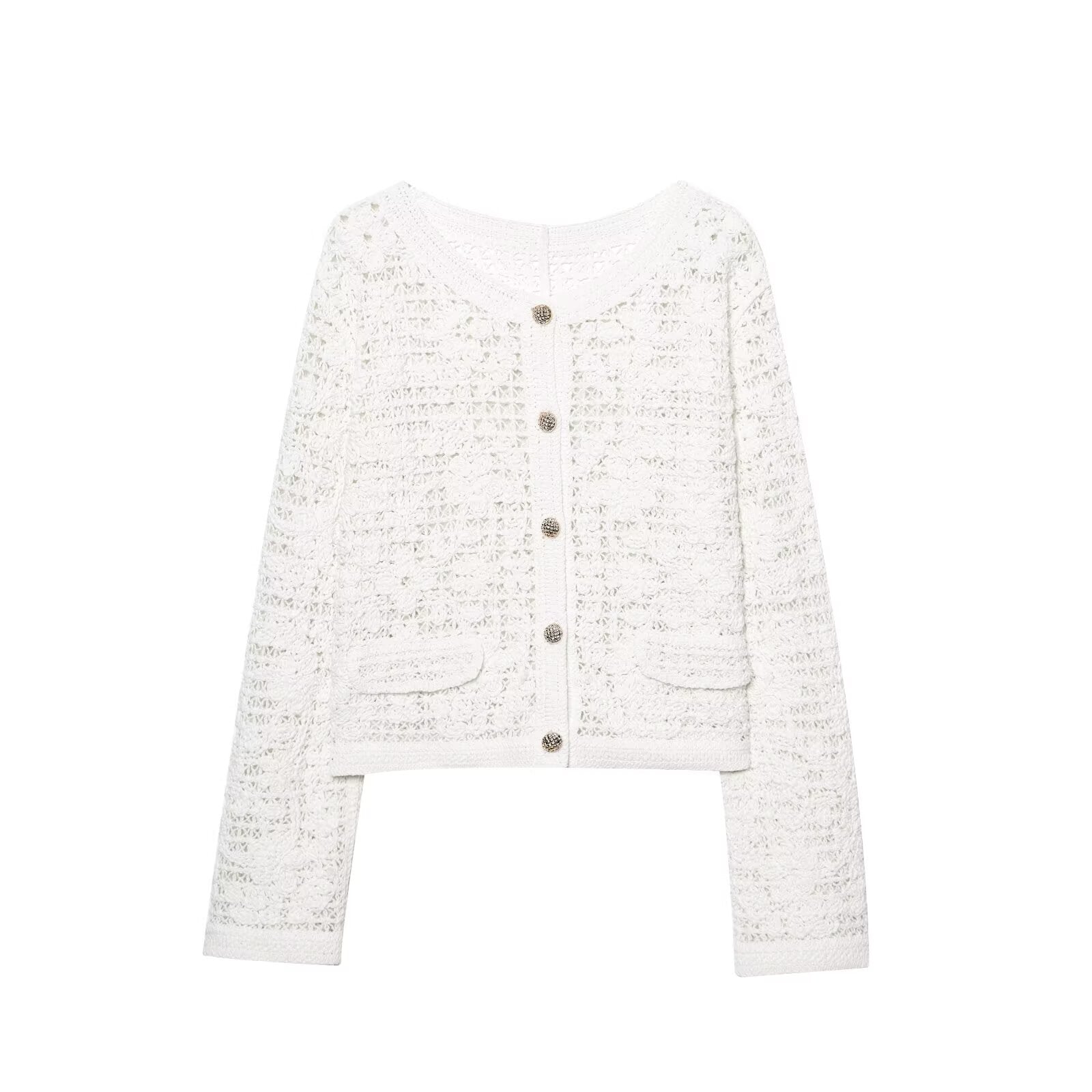 Women's New Fashion breasted decorative long sleeved crocheted knitted top