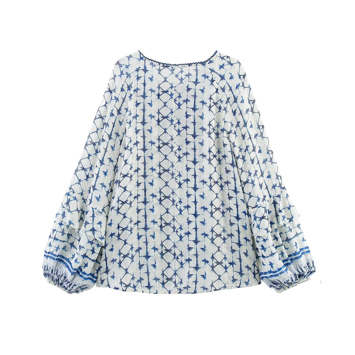 Women's' New Fashion lace up decoration loose long sleeved printed shirt