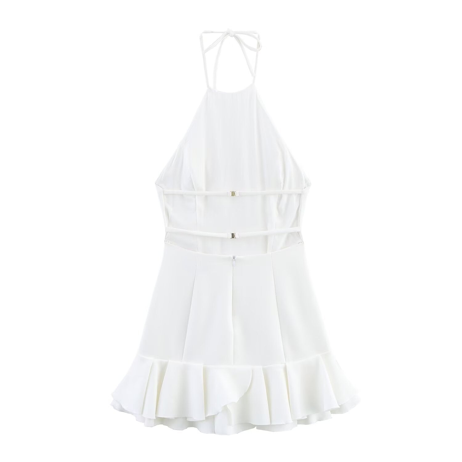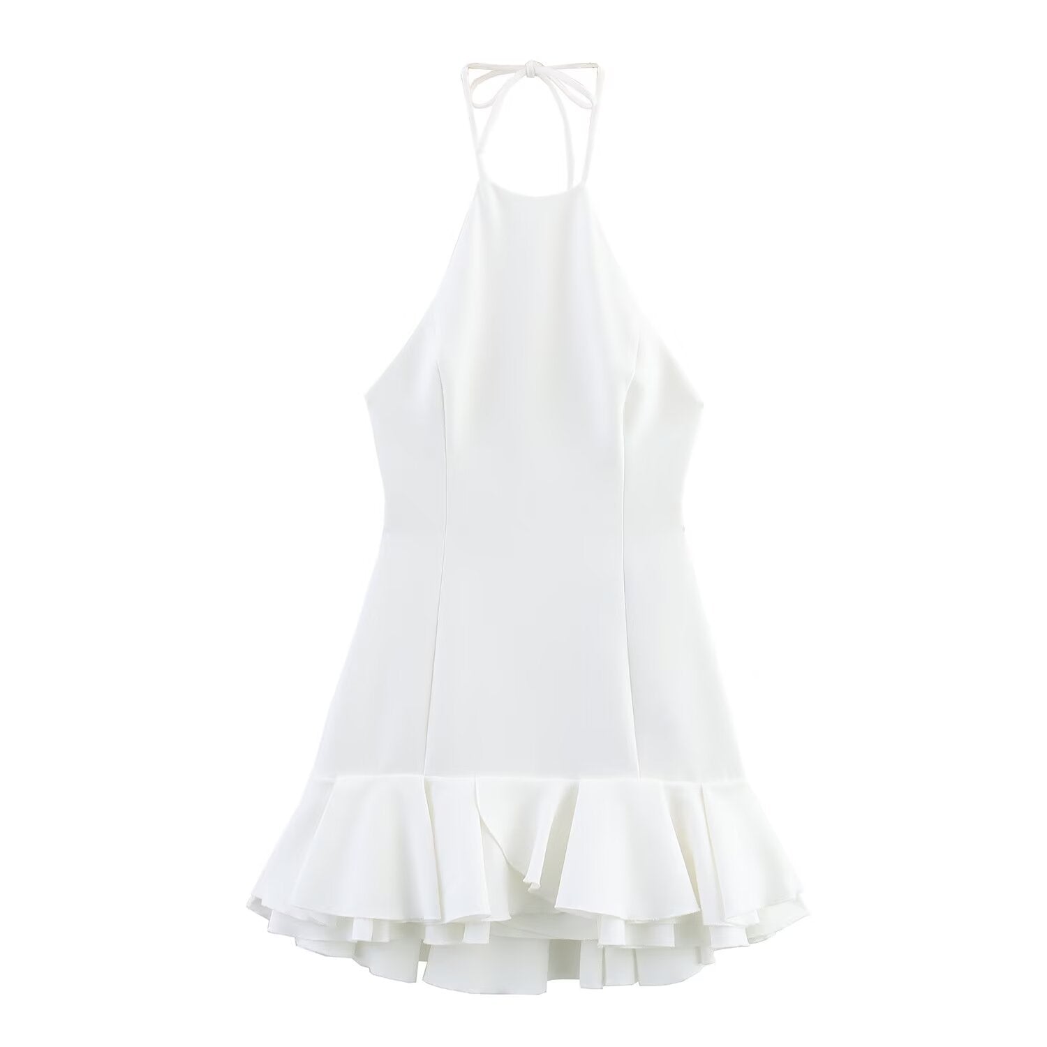 Women's' New Fashion layered decoration slim backless hanging neck mini dress