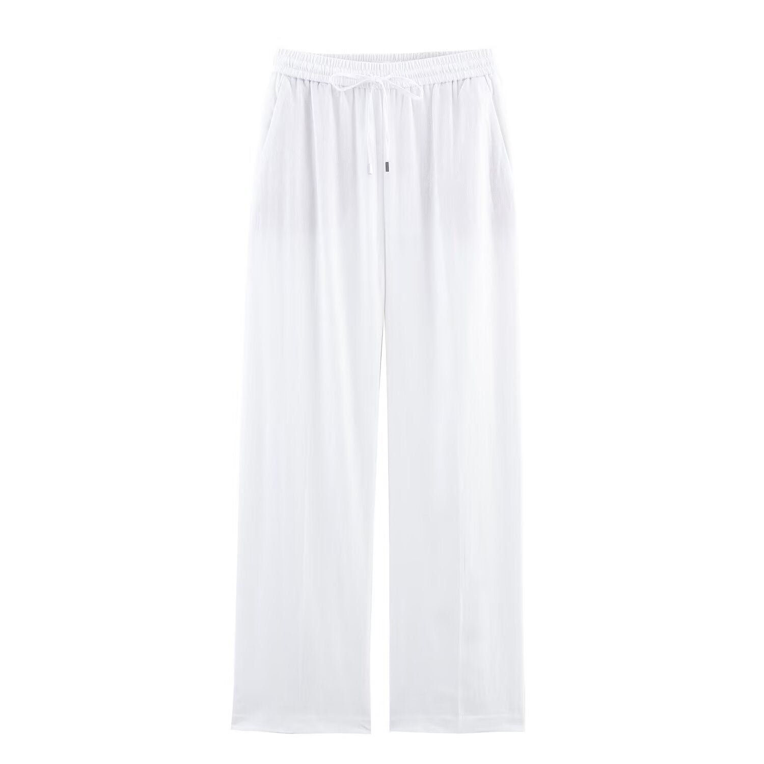 Women's' new fashion loose elastic waist casual linen blended straight leg pants