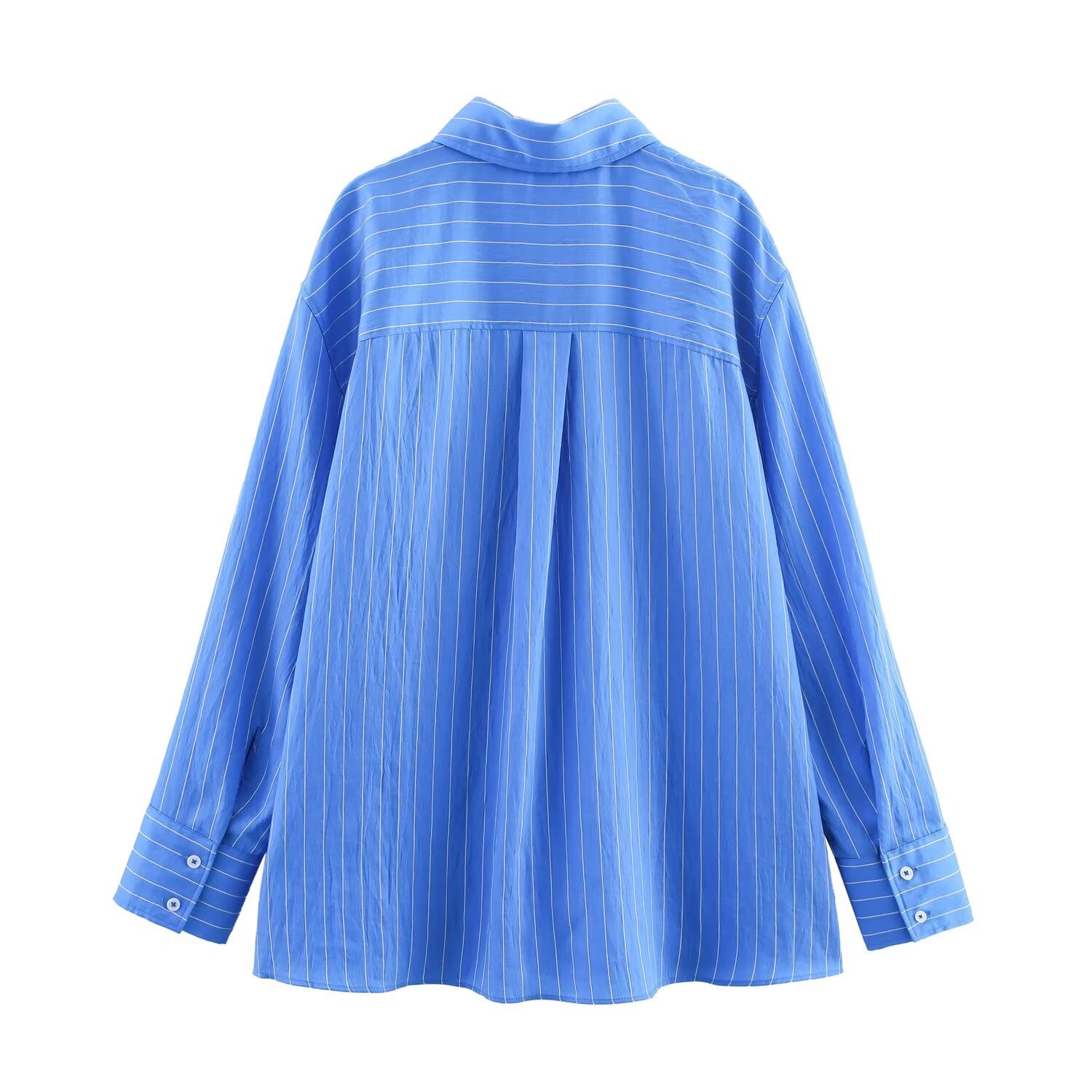 Women's new fashion loose single breasted striped shirt retro long sleeved button up women's shirt+Pants Women's suit