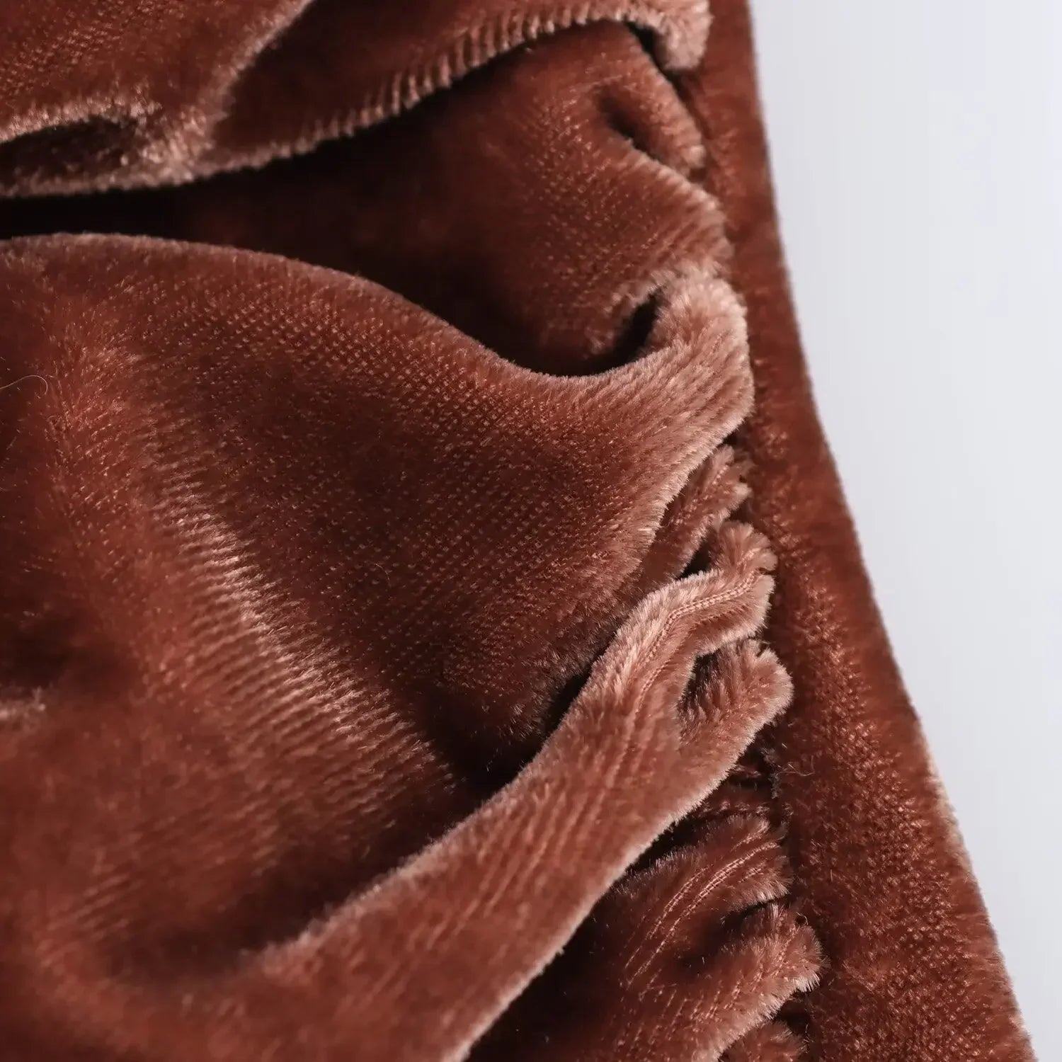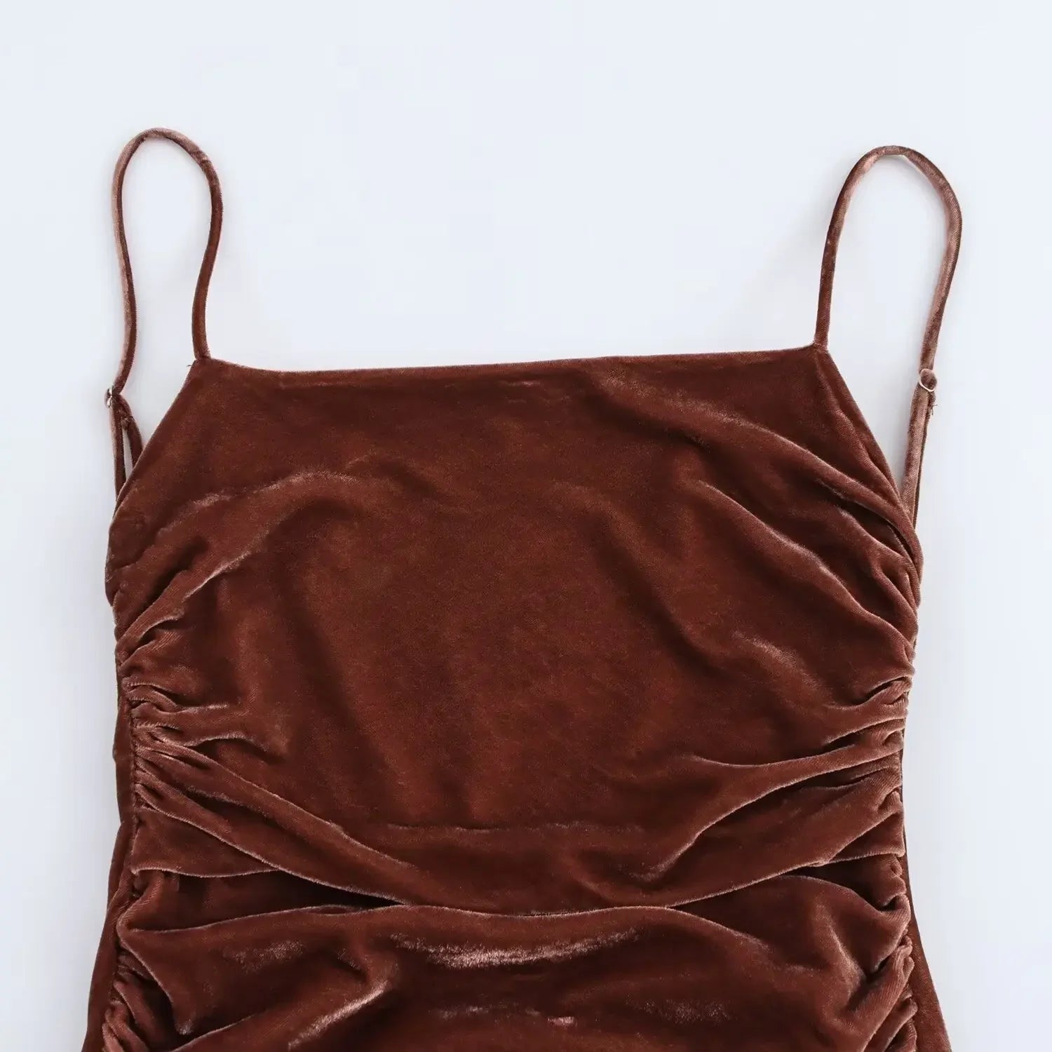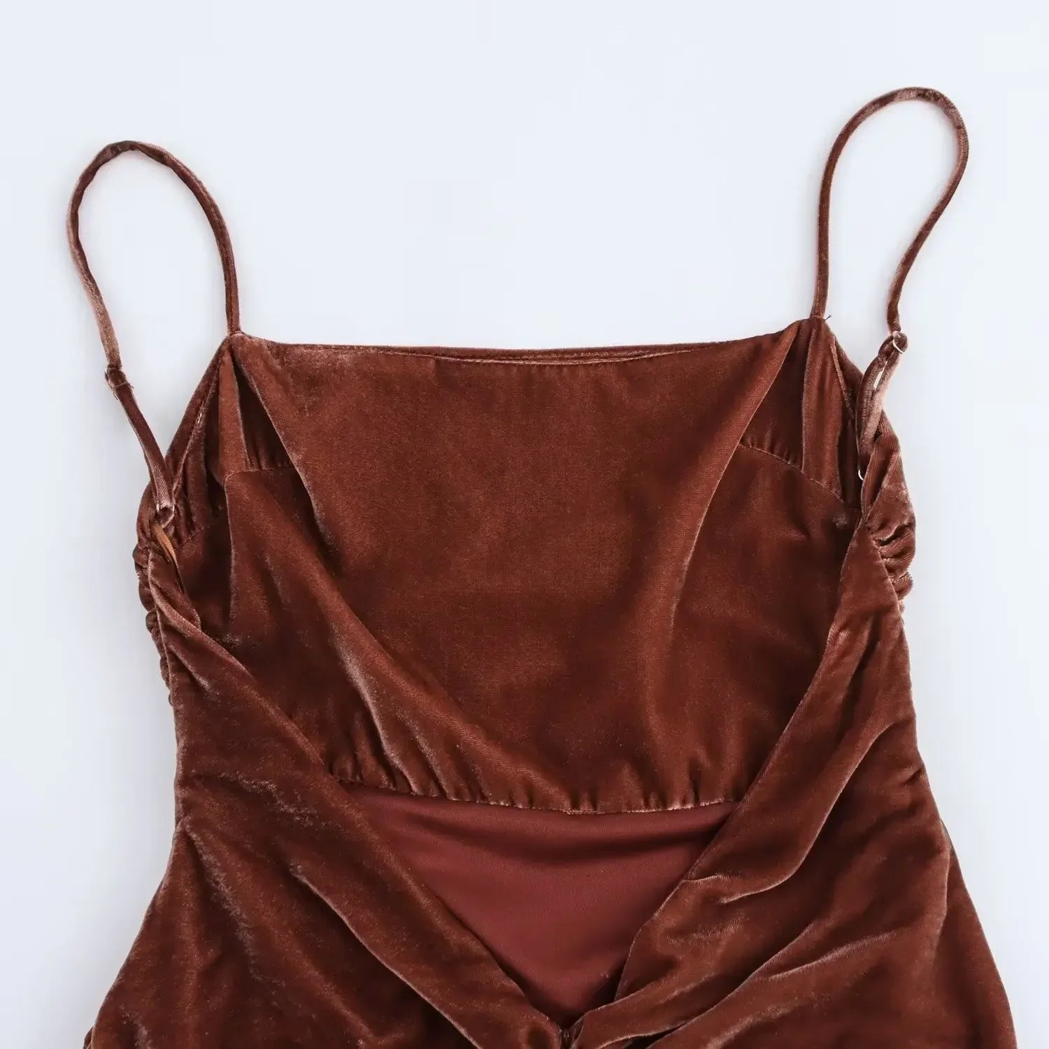 Women's new fashion pleated decoration slim suspender velvet Midi dress retro sleeveless backless women's dress Mujer