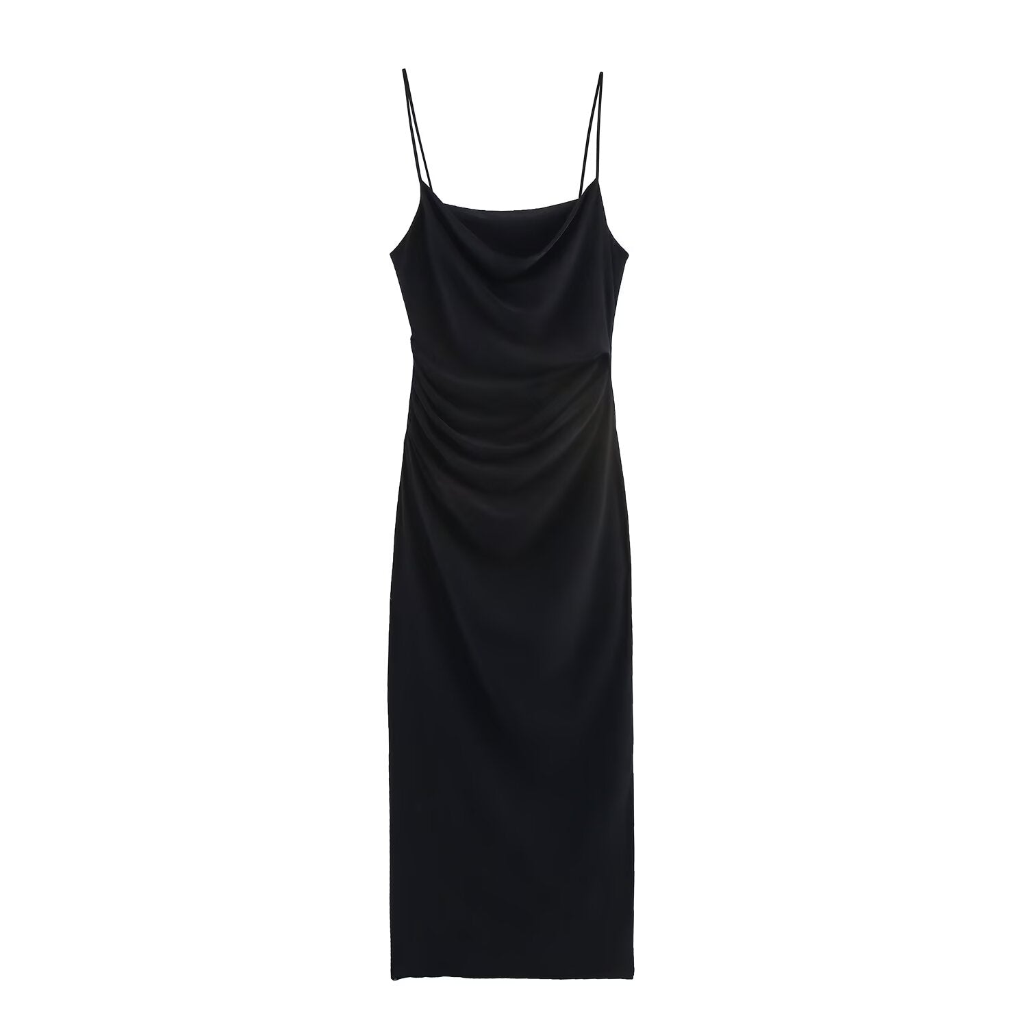 Women's' New Fashion pleated decorative sexy backless suspender MIDI dress