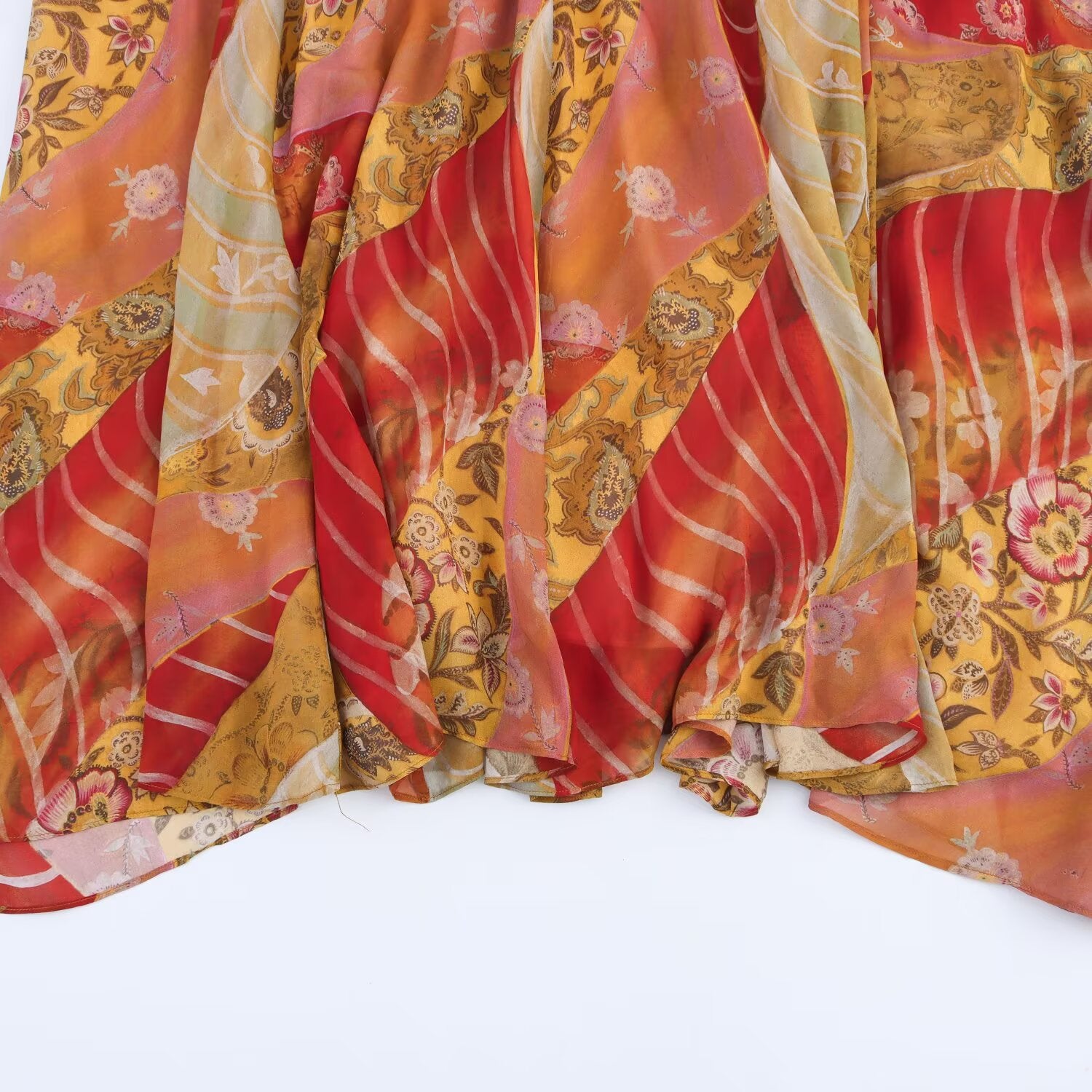 Women's New Fashion Printed Draped Chiffon suspender Midi Dress