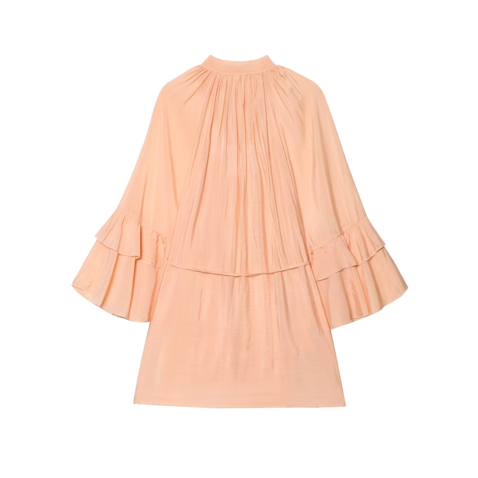 Women's new fashion ruffle edge decoration loose lace up long sleeved mini dress