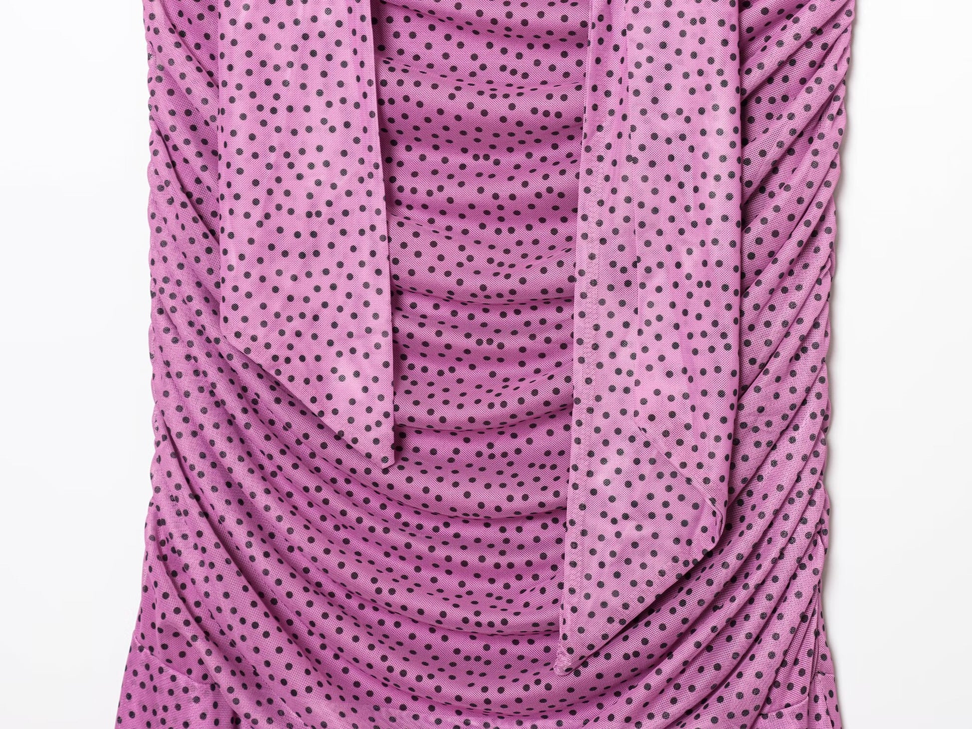 Women's New Fashion scarf decoration polka dot print strapless pleated MIDI dress