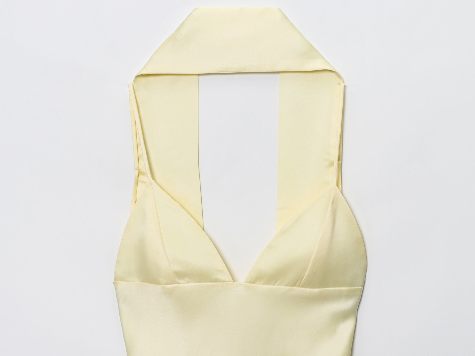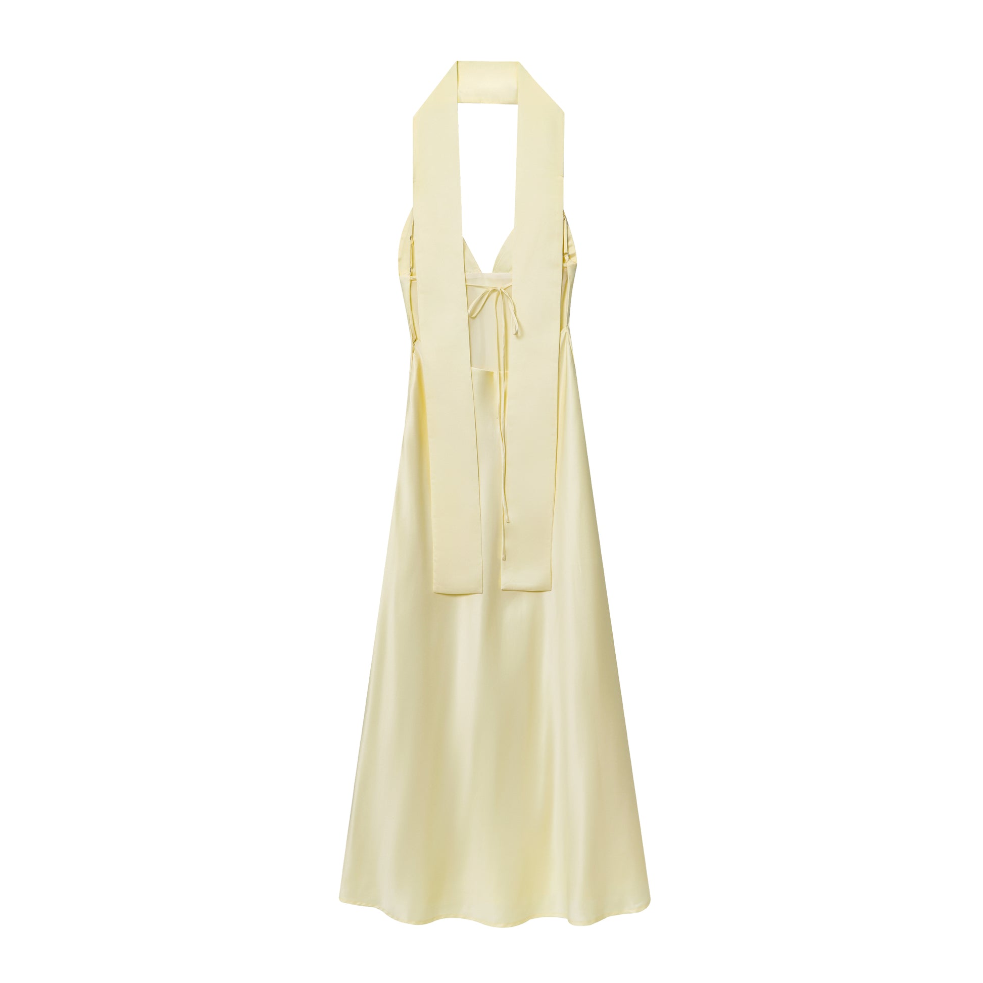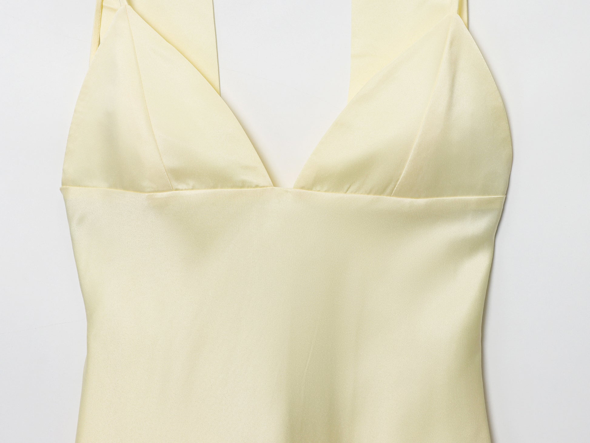Women's New Fashion Scarf Decoration Satin Texture suspender Midi Dress