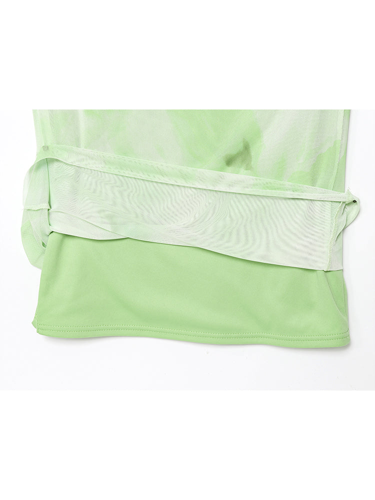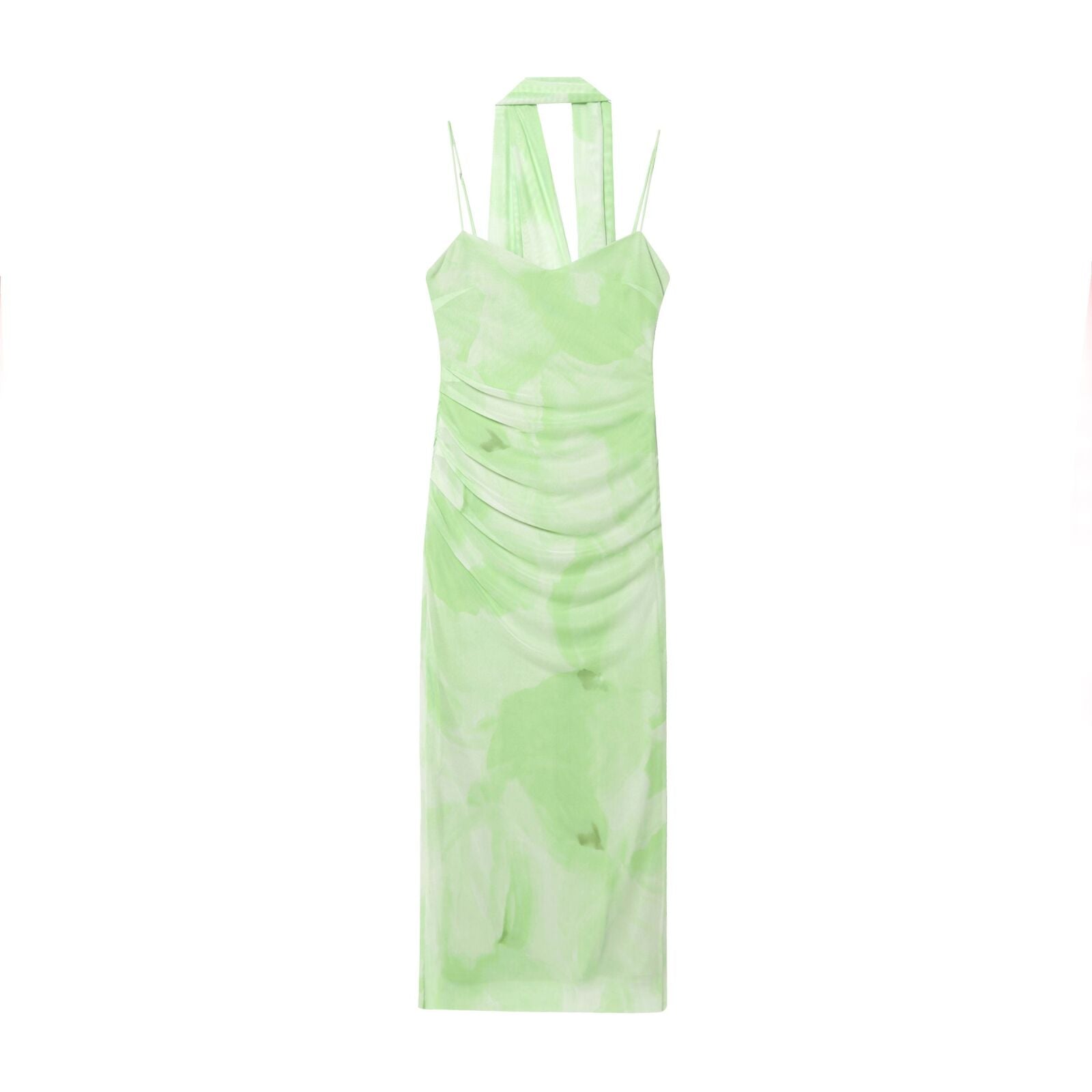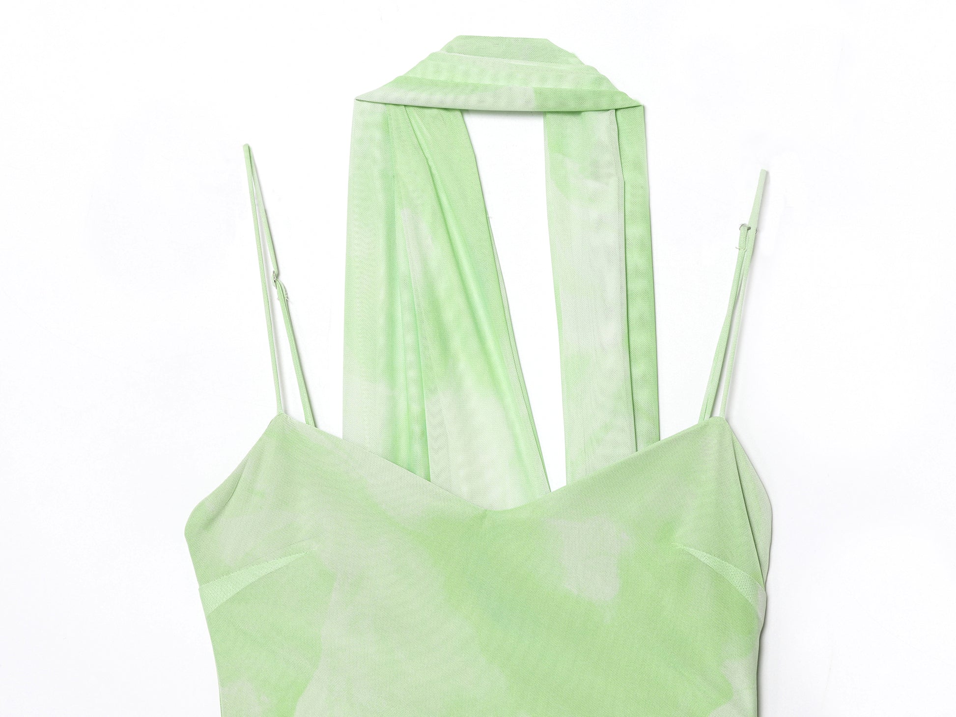 Women's New Fashion scarf decoration tulle pleated suspended Midi dress