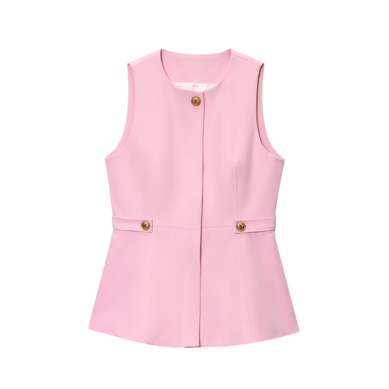Women's new fashion short skirt style hem O-Neck sleeveless vest+Pants suit