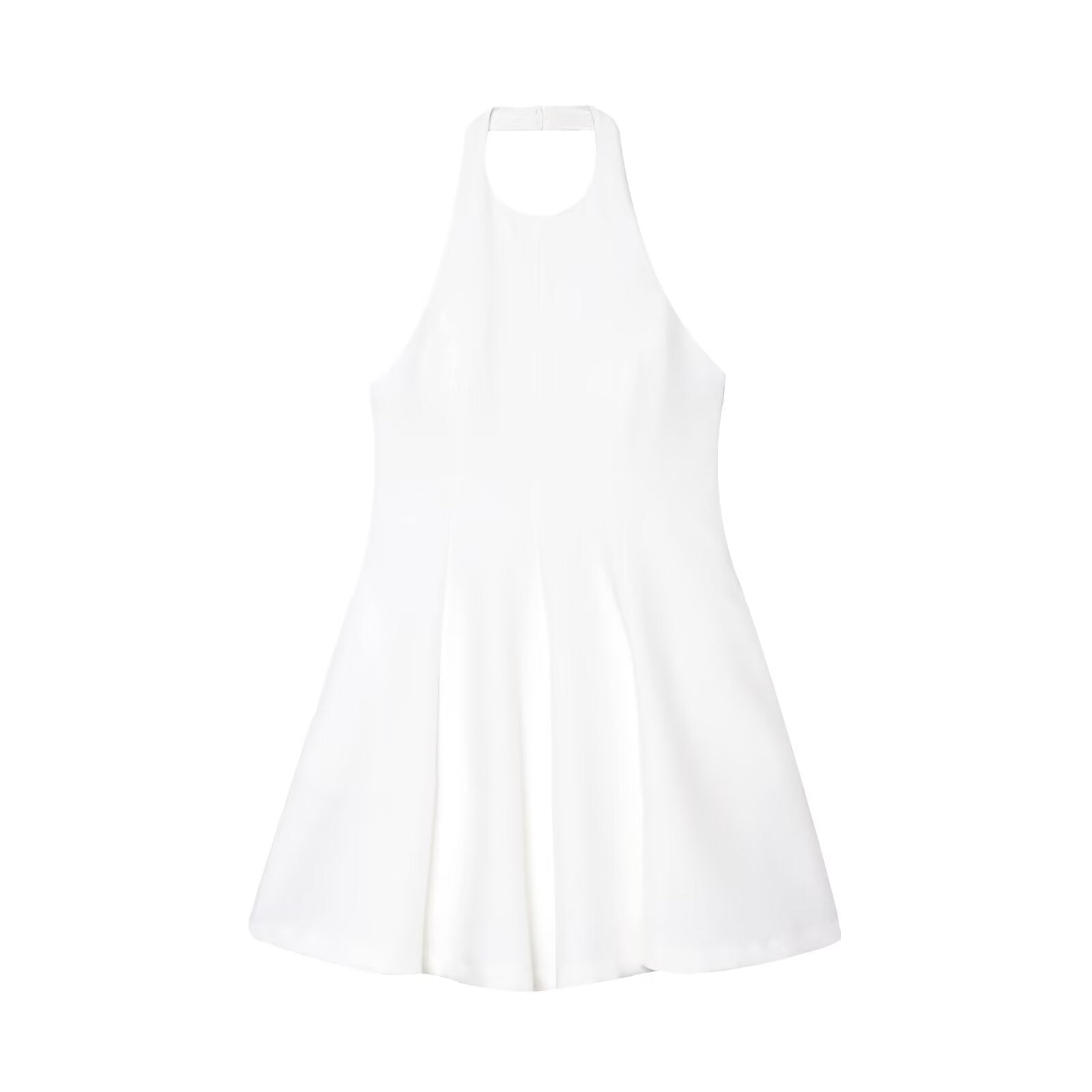 Women's new fashion wave style hem slim backless halter neck mini dress