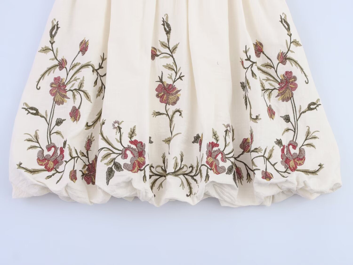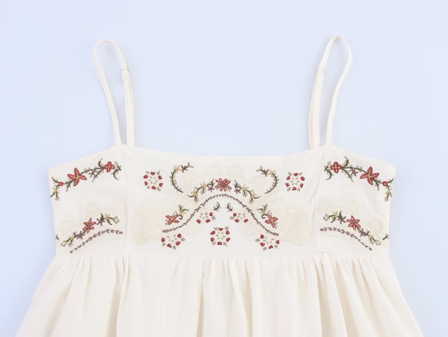 Women's new fashion wide pleated floral embroidery suspender mini dress