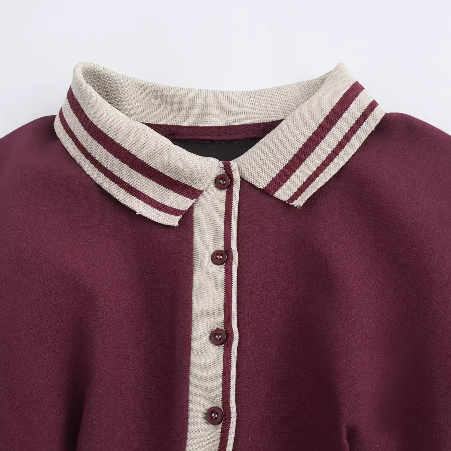 Women's new fashion wide pleated hem slim contrasting ribbed mini dress retro short sleeved button up women's dress Mujer