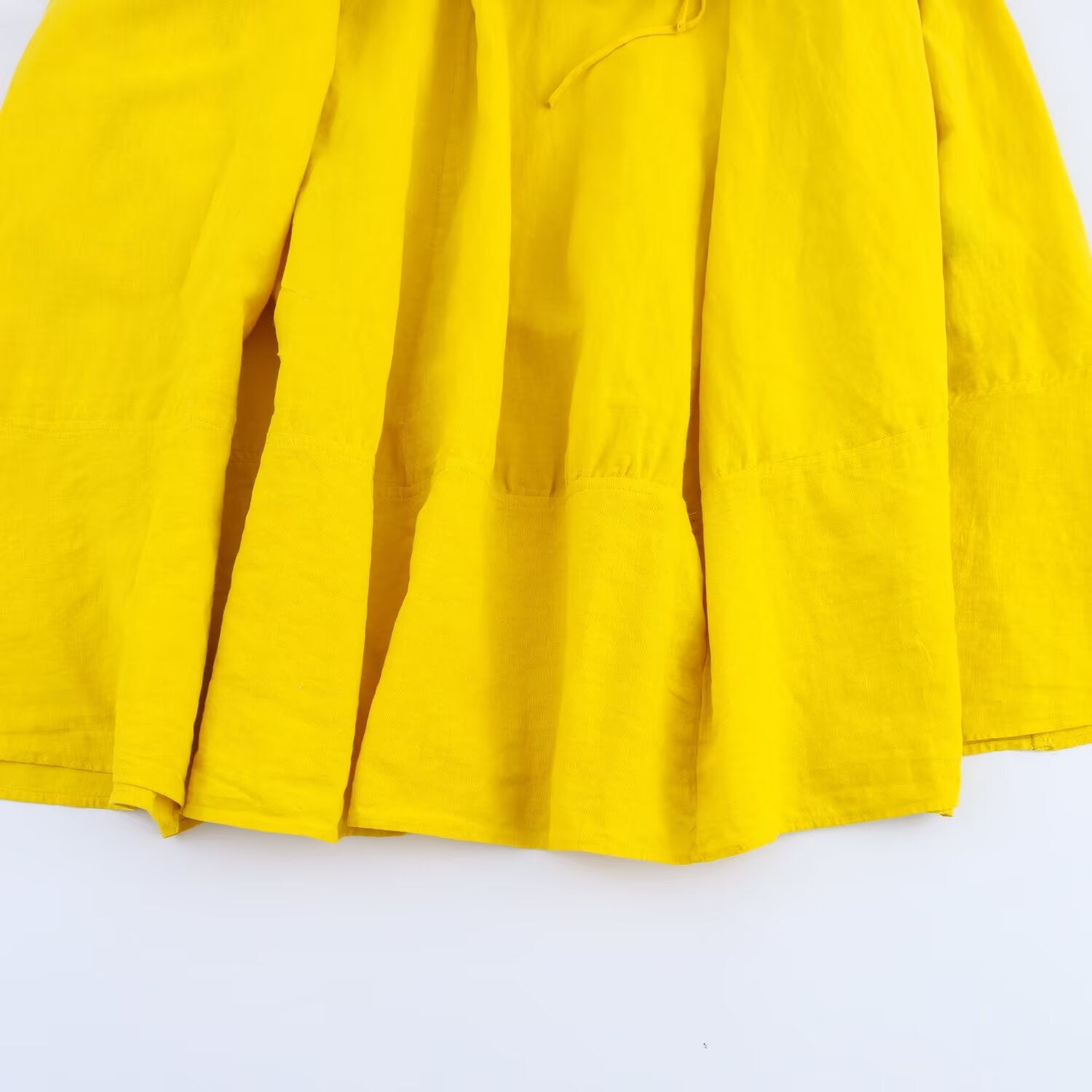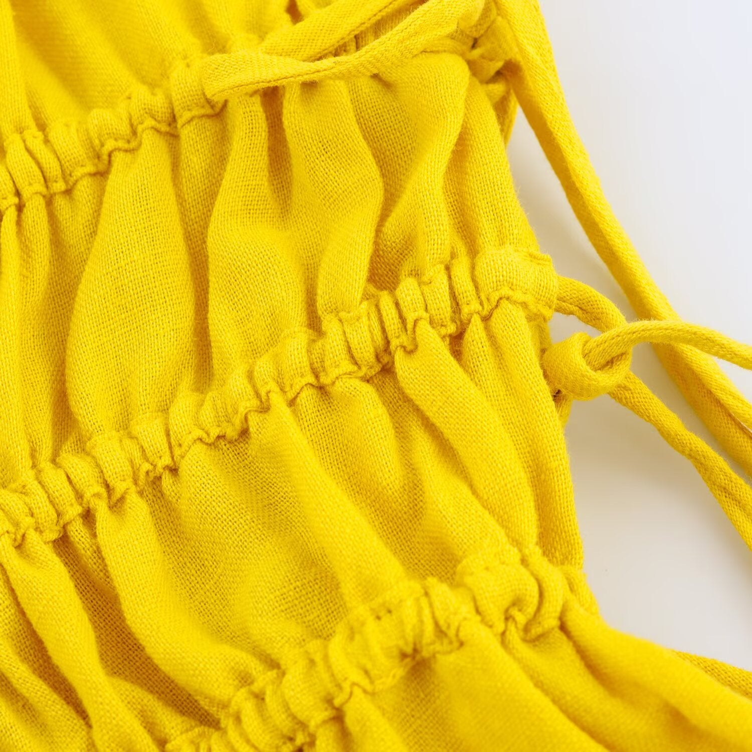 Women's' new fashion wide pleated linen blended suspender MIDI dress