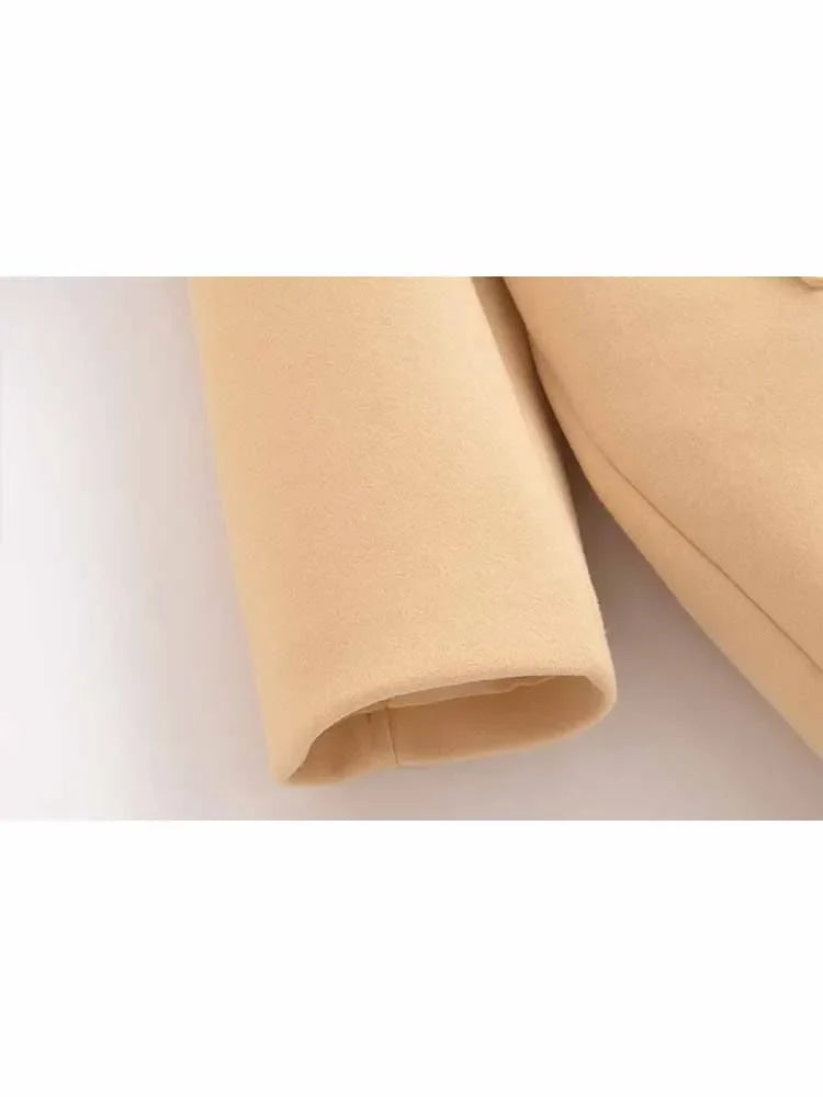 Women's winter fashion loose double breasted warm Lapel woolen coat retro long sleeved side pocket women's coat chic top