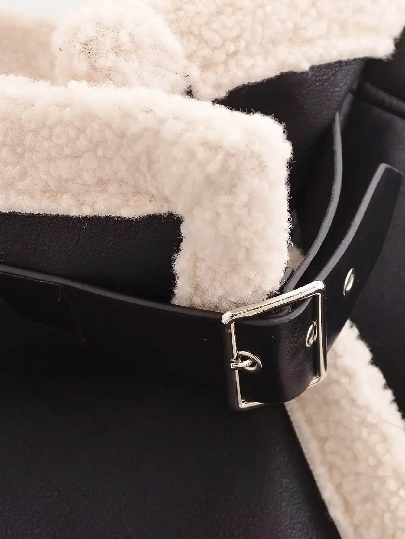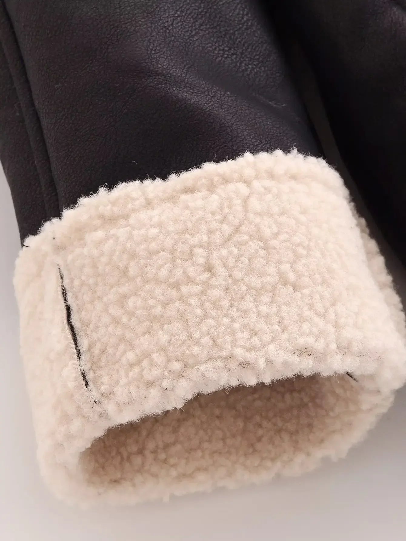 Women's winter fashion loose single breasted warm Fur Faux Leather jacket coat retro long sleeved pocket women's coat chic top