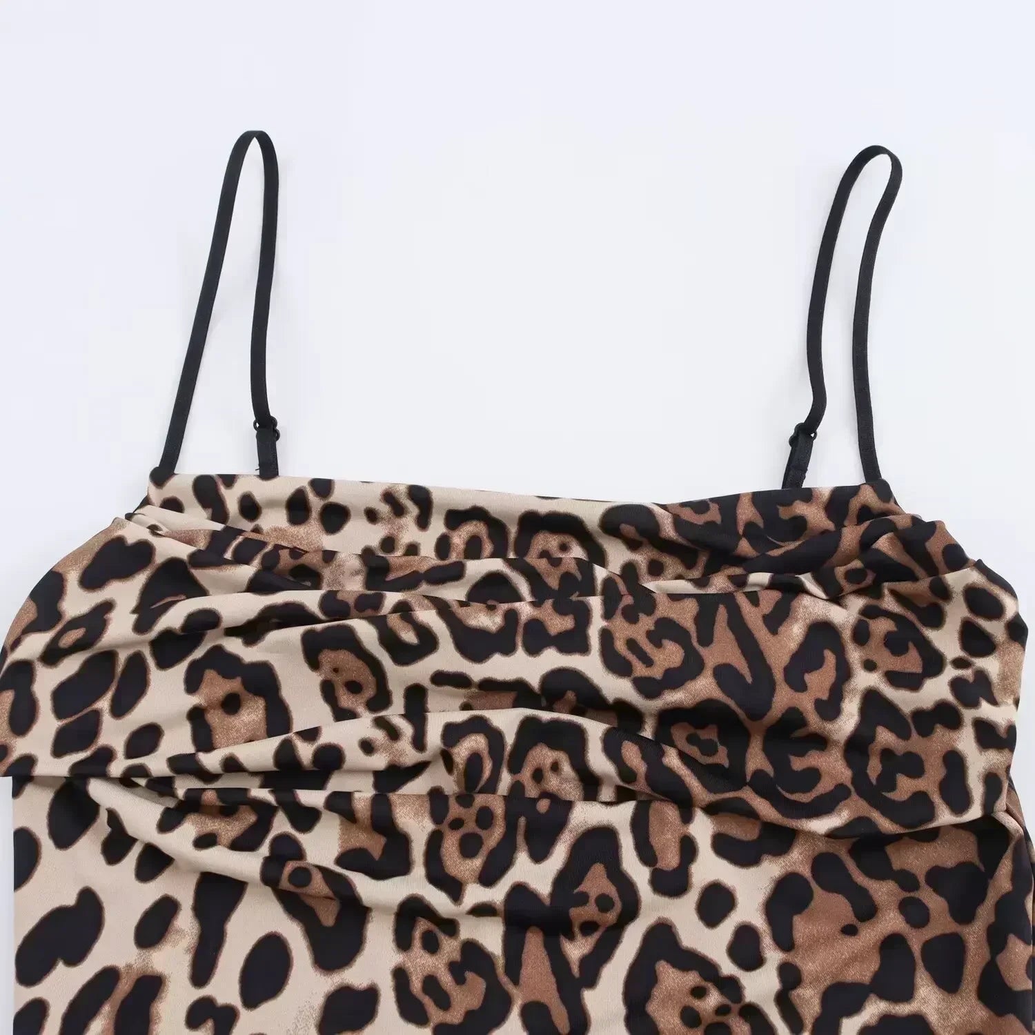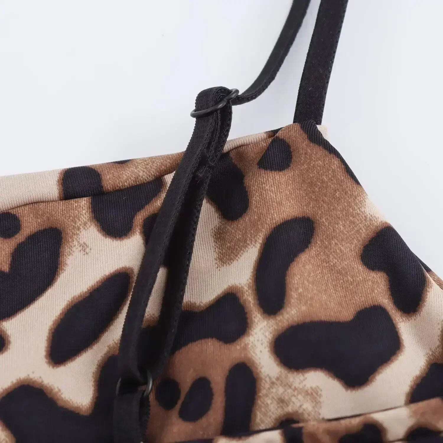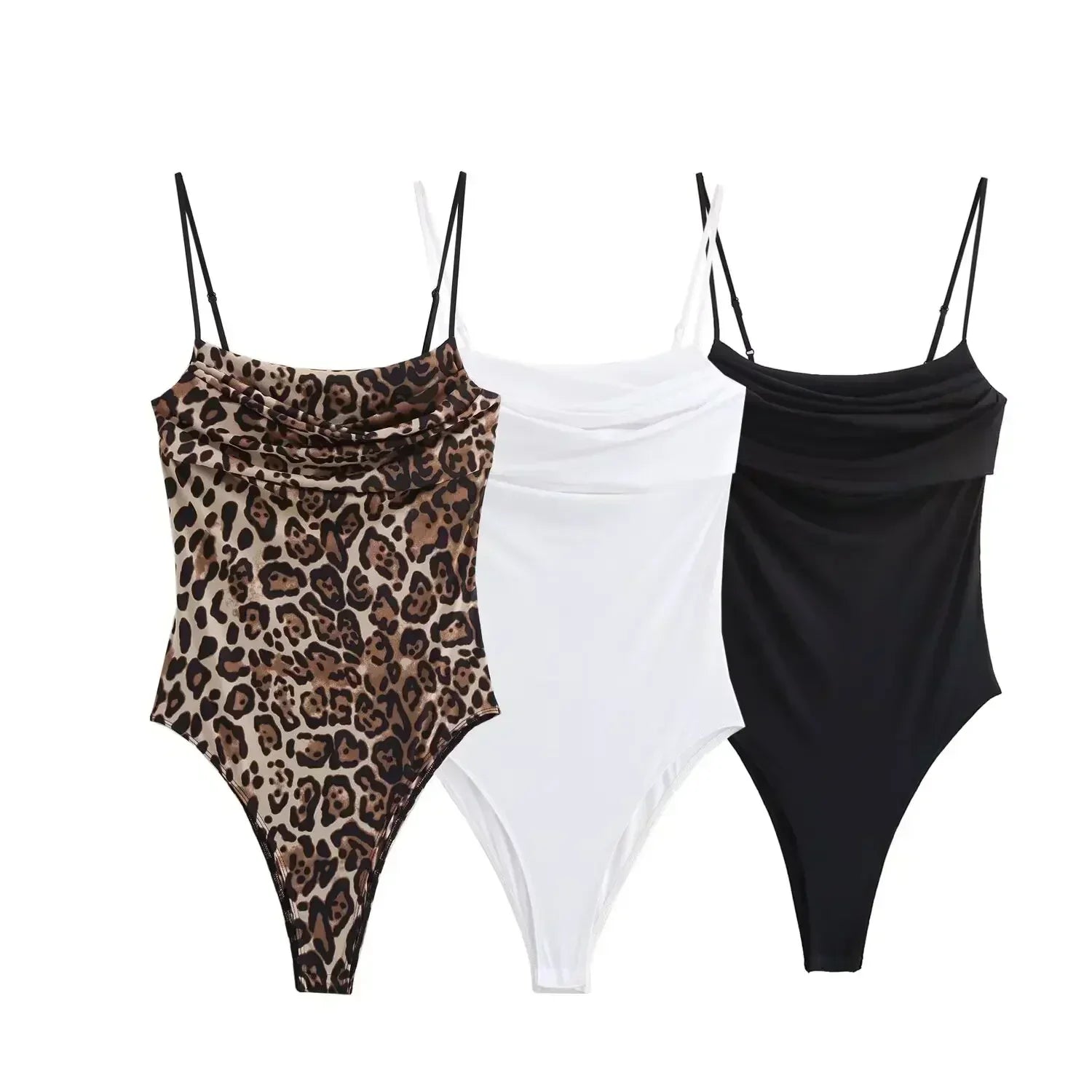 2024 women's new fashion pleated collar tight animal print striped jumpsuit retro Backless Thin Straps women's short jumpsuit