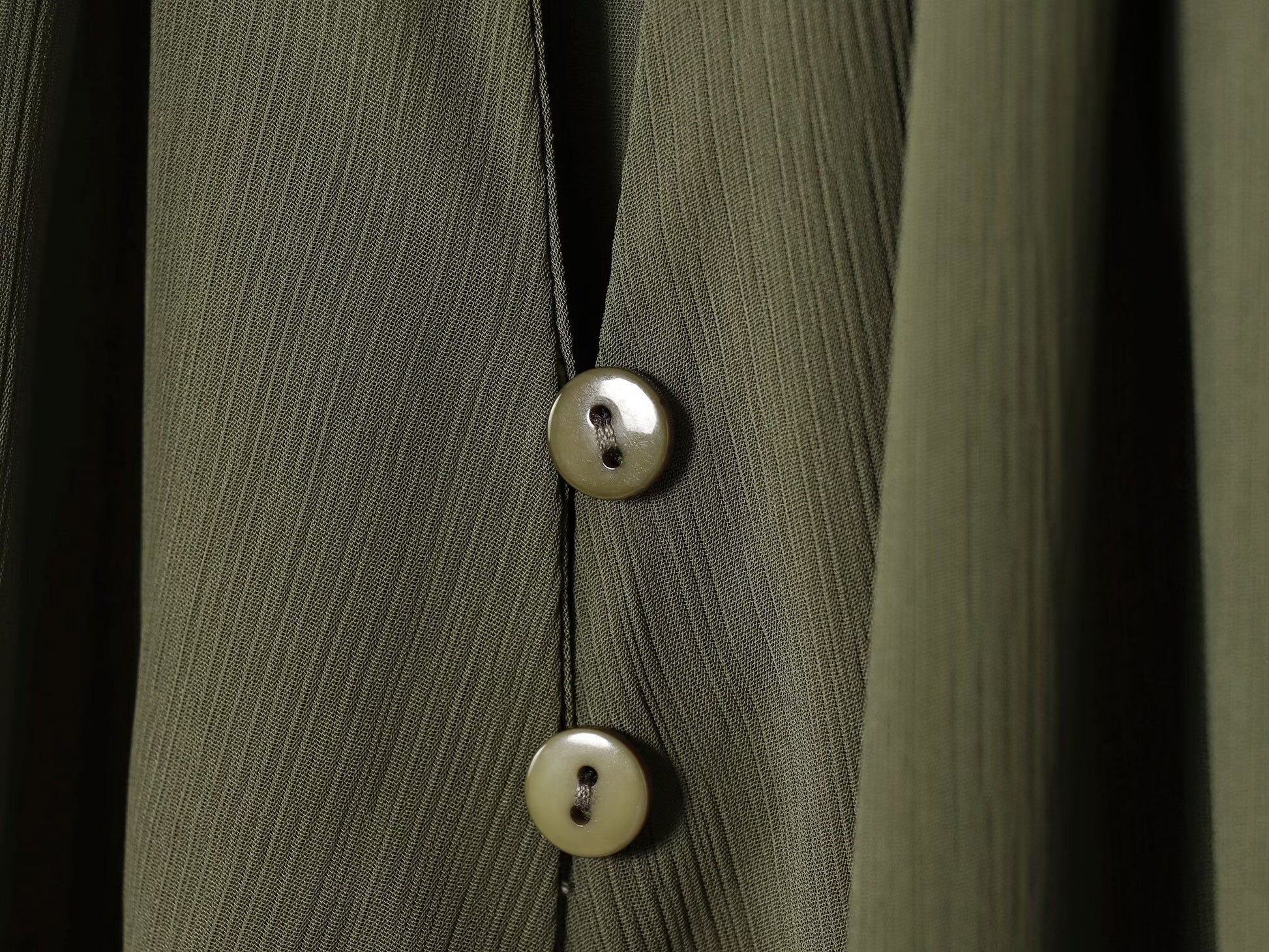 2025 Women's fashion bow Lace up decoration long sleeved pleated shirt