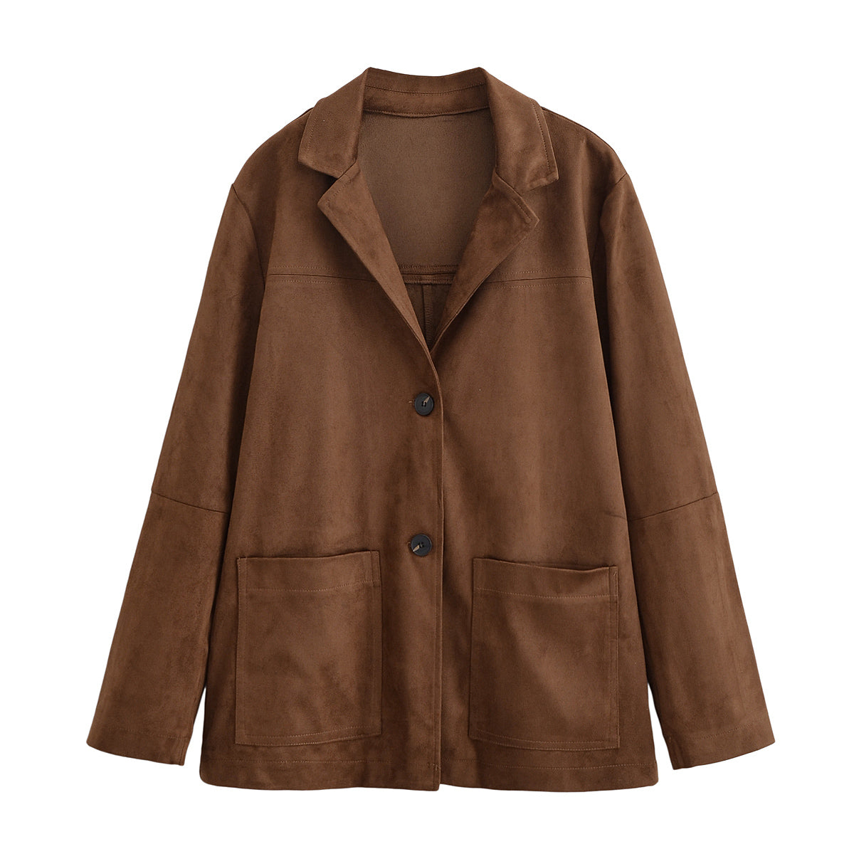 2025 women's new fashion casual double-sided velvet Faux Leather suit jacket